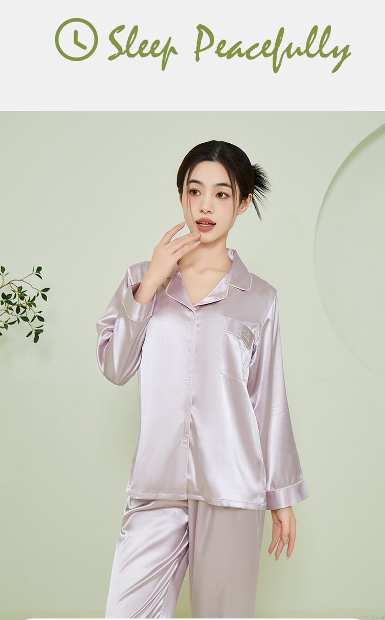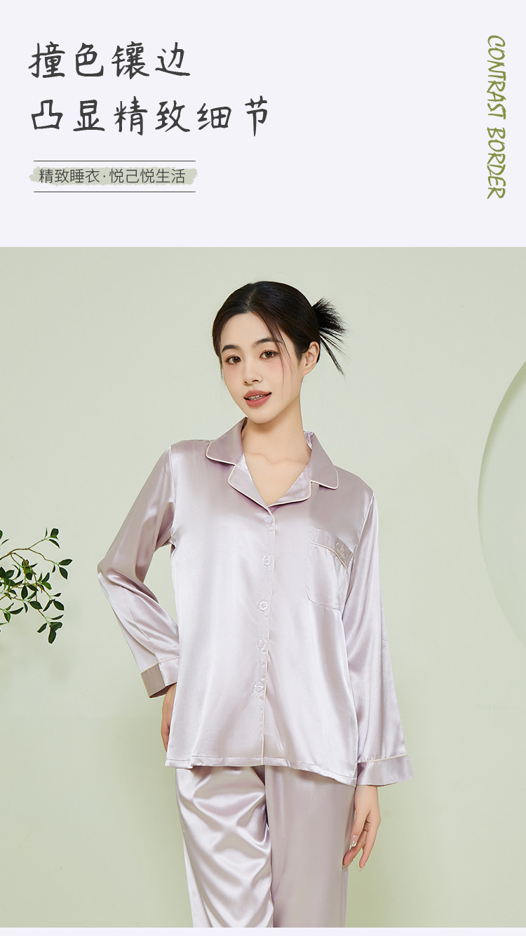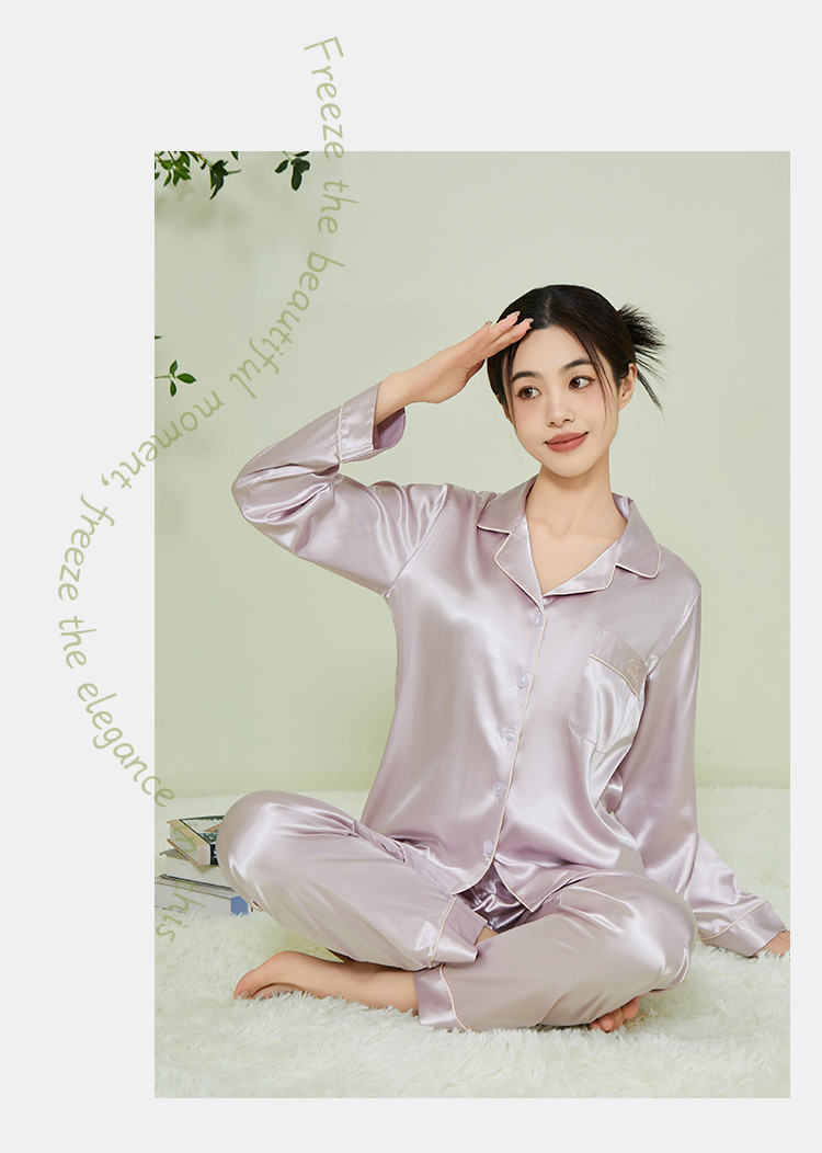 【垂感丝滑】女士冰丝睡衣春秋长袖可外穿亲肤睡衣家居服套装女 574091
