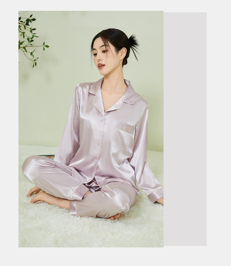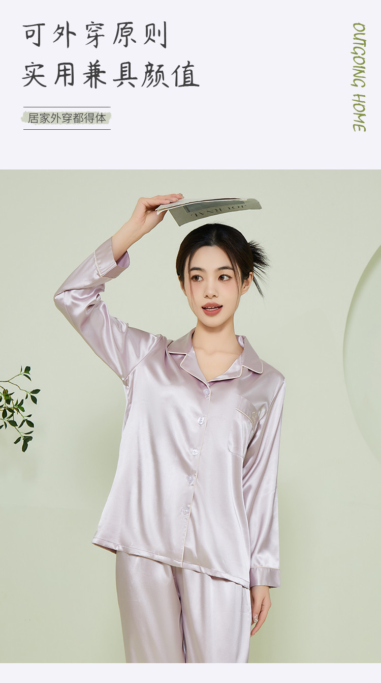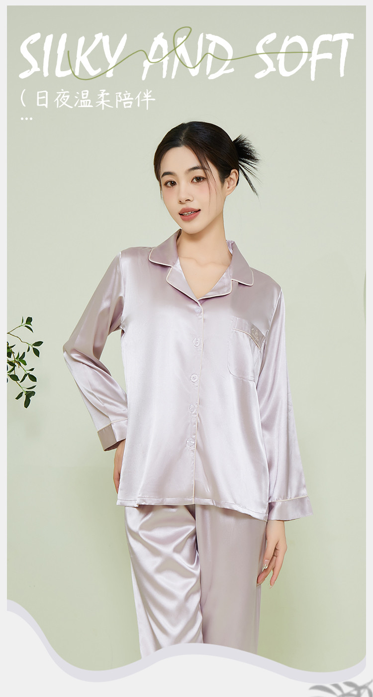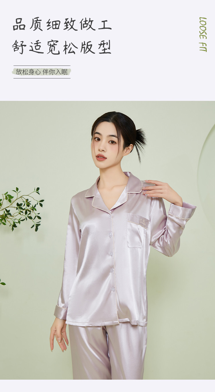商品名称:【垂感丝滑】女士冰丝睡衣春秋长袖可外穿亲肤睡衣家居服套装女 574091