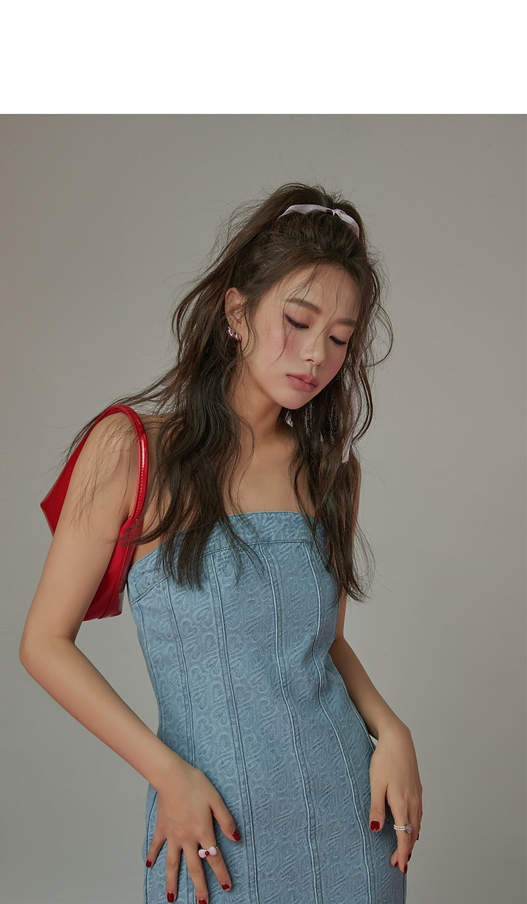 爱心牛仔抹胸连衣裙女夏甜辣小个子气质a字短裙子 330835