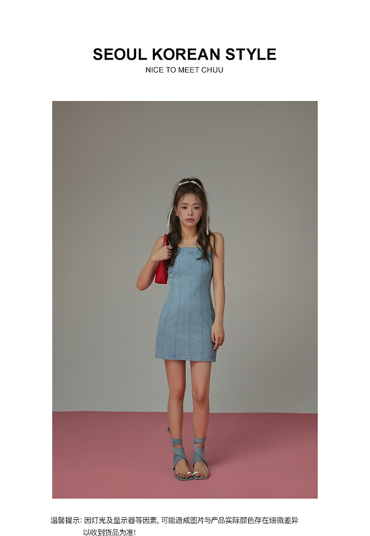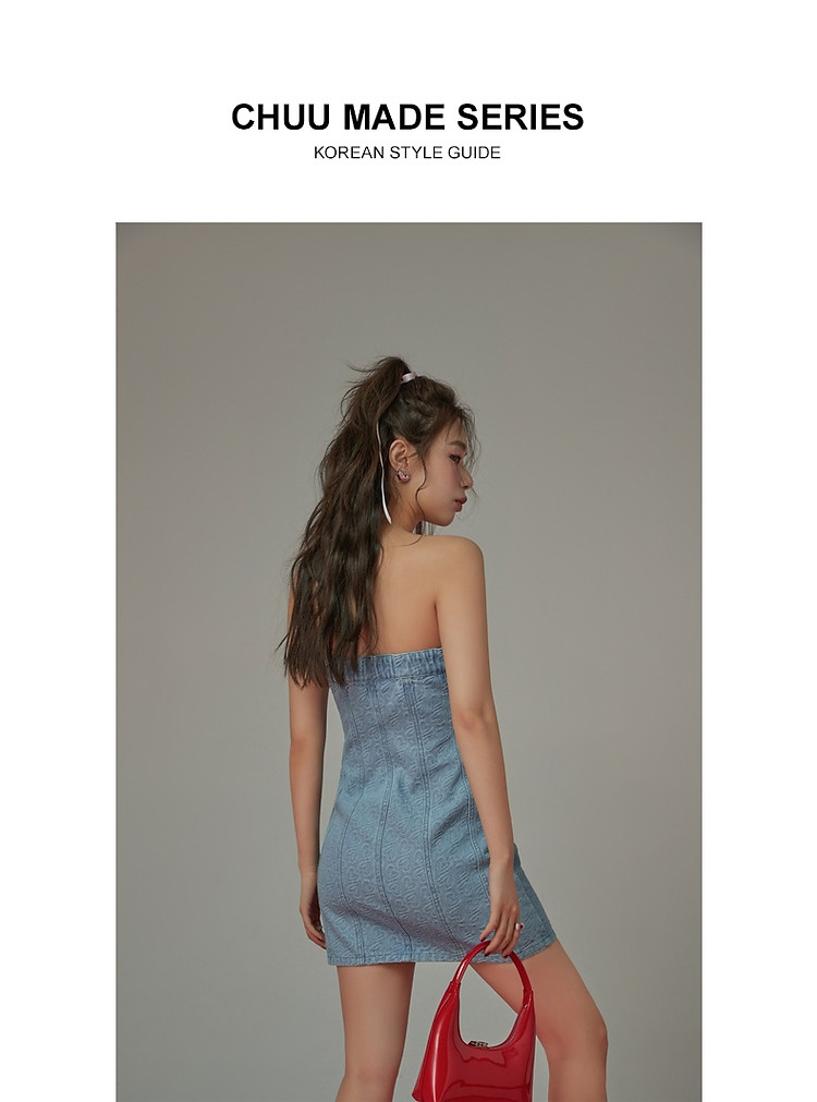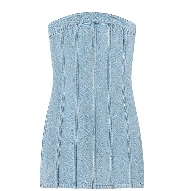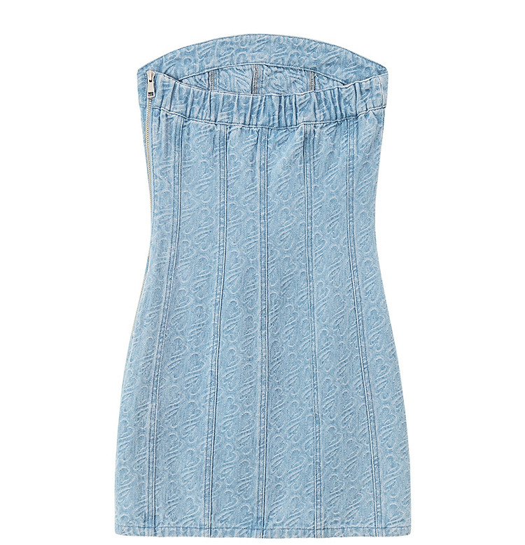 商品名称:爱心牛仔抹胸连衣裙女夏甜辣小个子气质a字短裙子 330835
