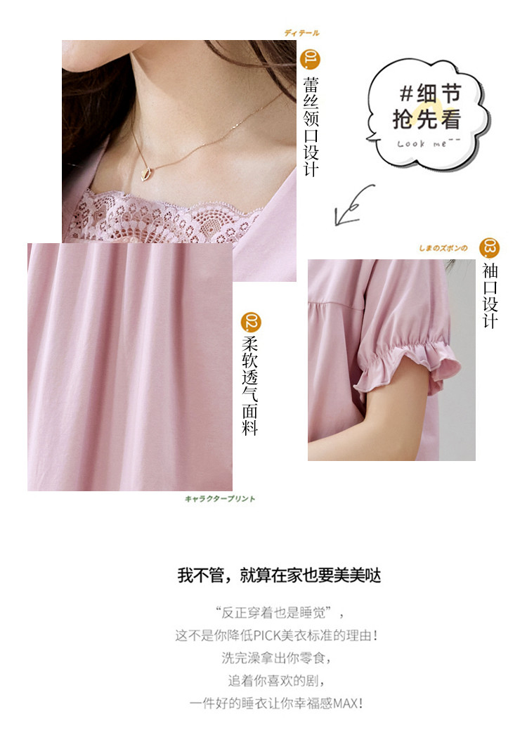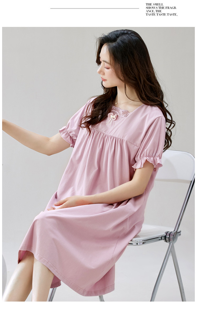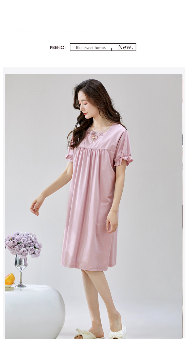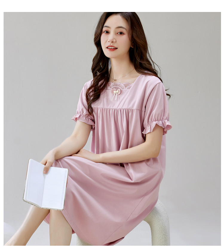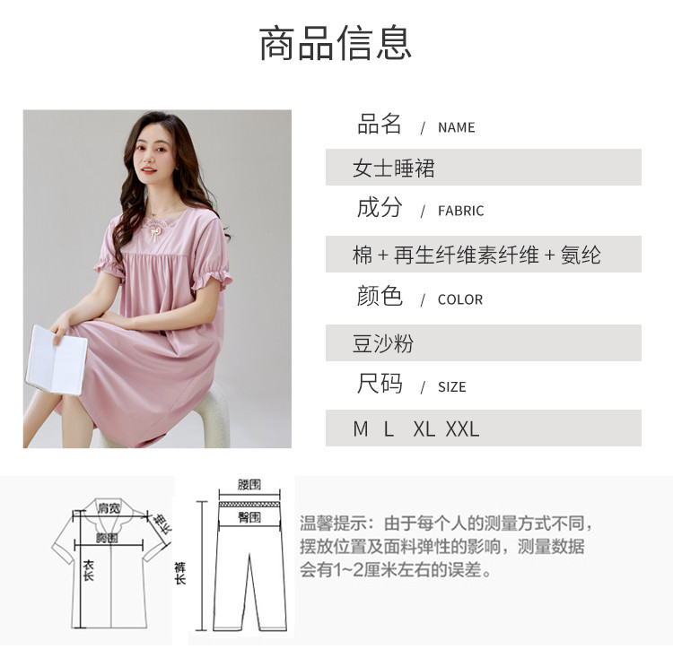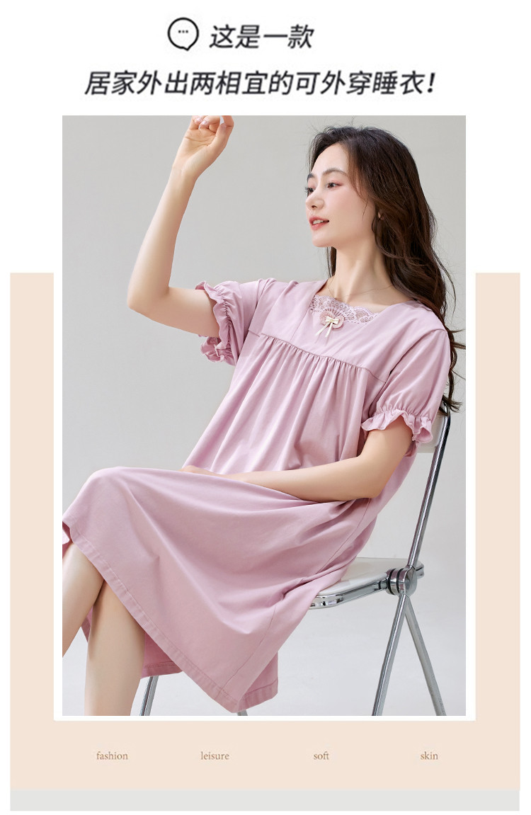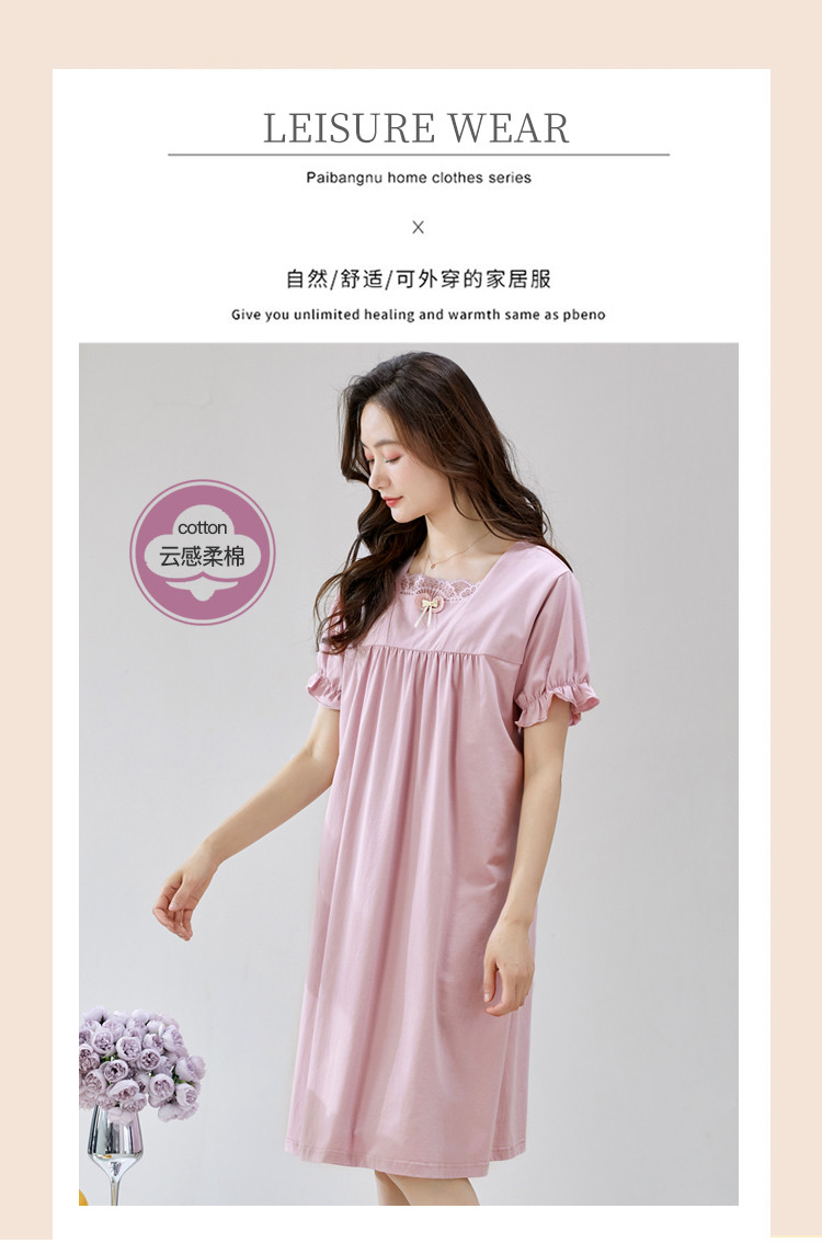 商品名称:【法式优雅方领】春夏云感柔棉亲肤短袖女士睡衣家居服可外睡裙 750750