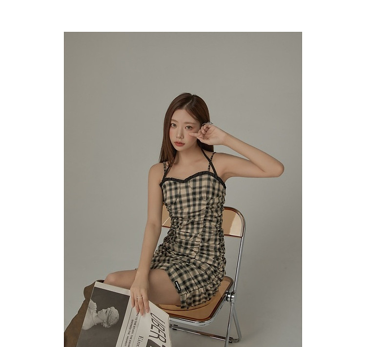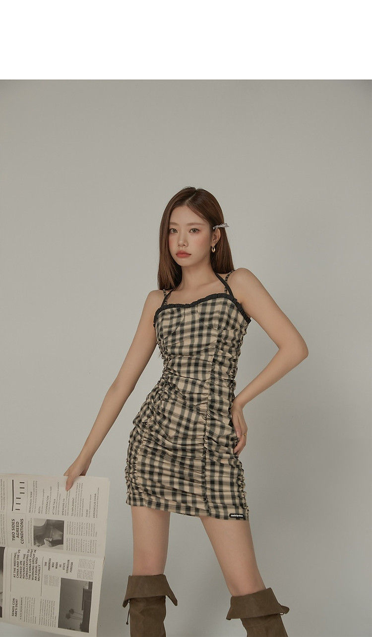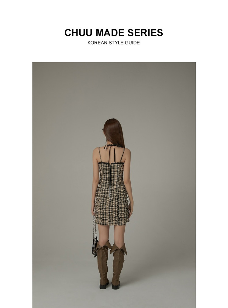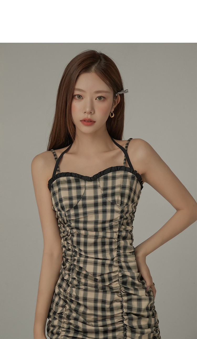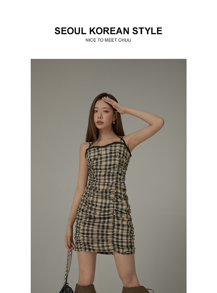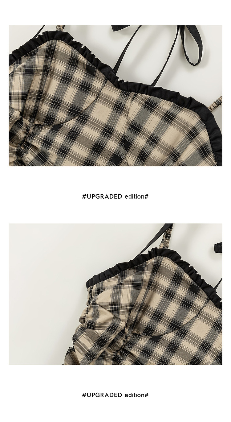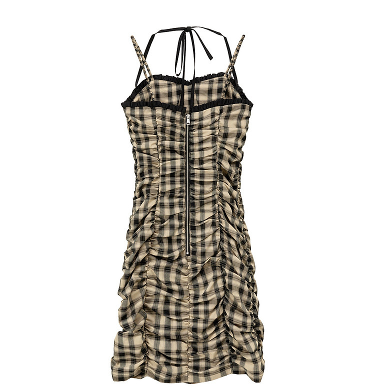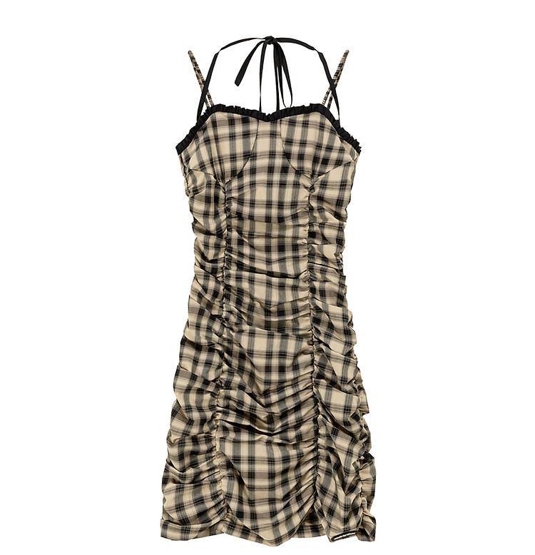 格纹褶皱连衣裙女夏辣妹背心裙洋气吊带短裙 441107
