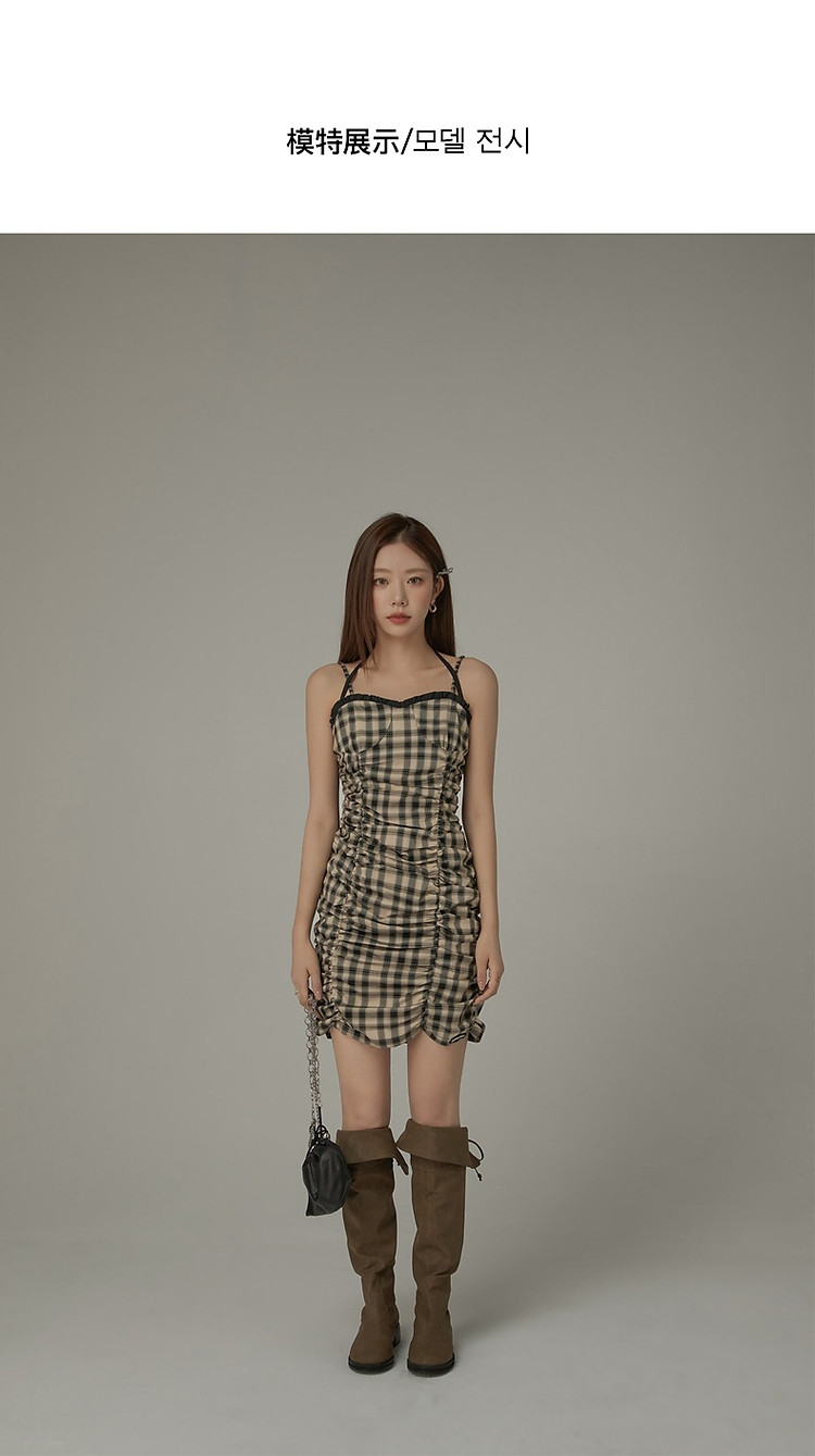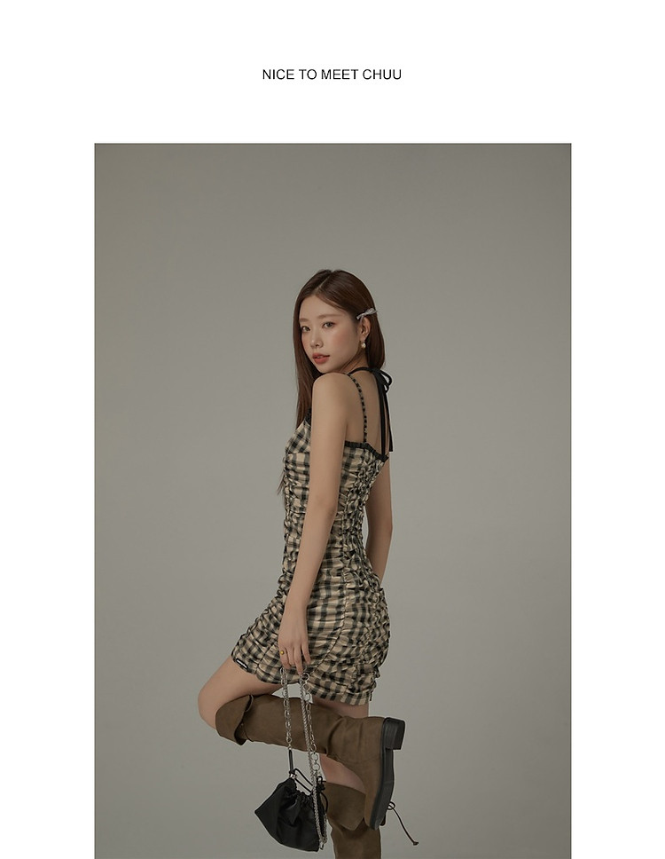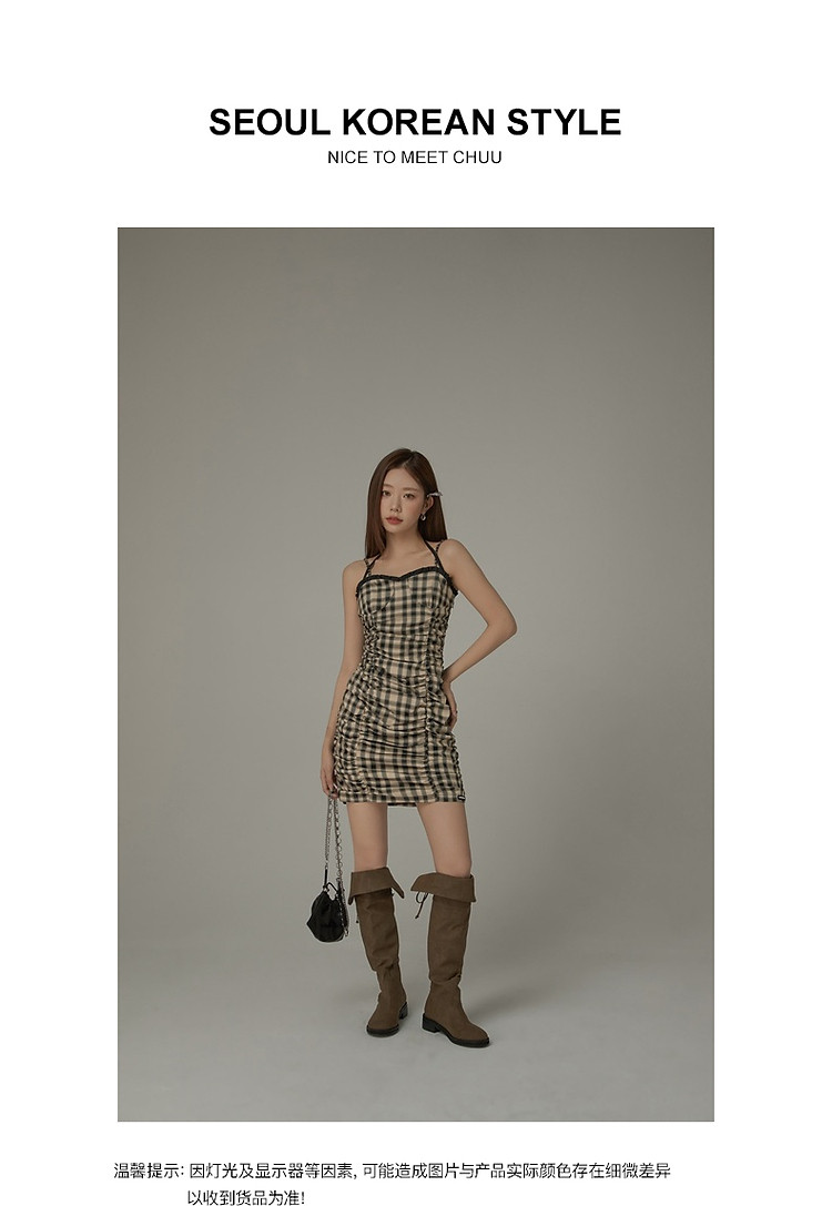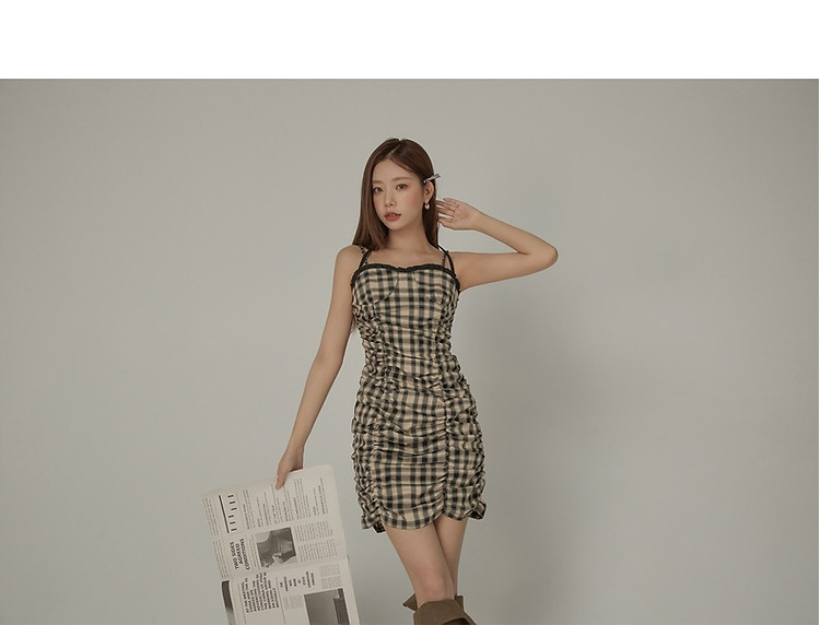 商品名称:格纹褶皱连衣裙女夏辣妹背心裙洋气吊带短裙 441107