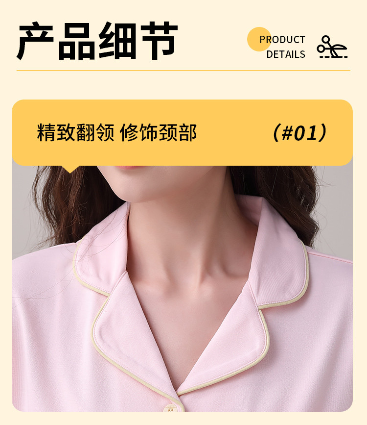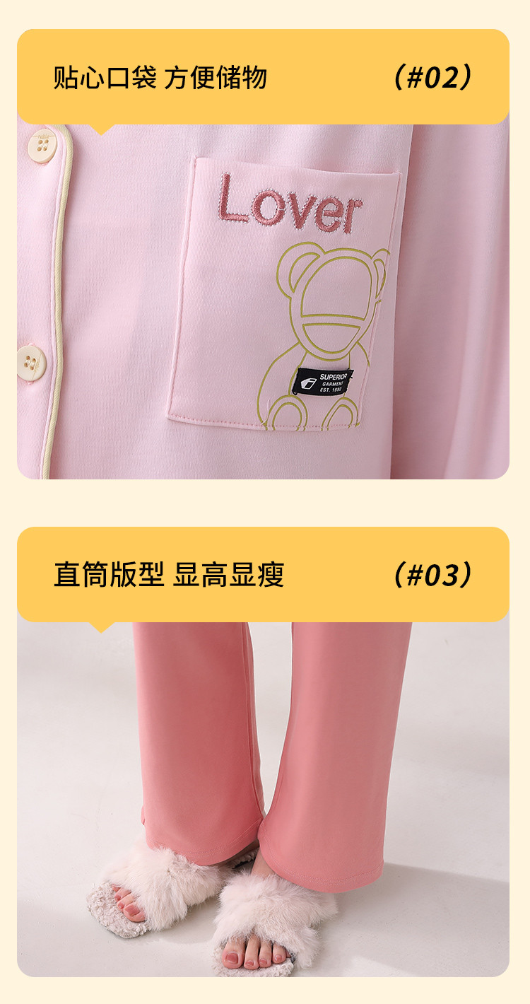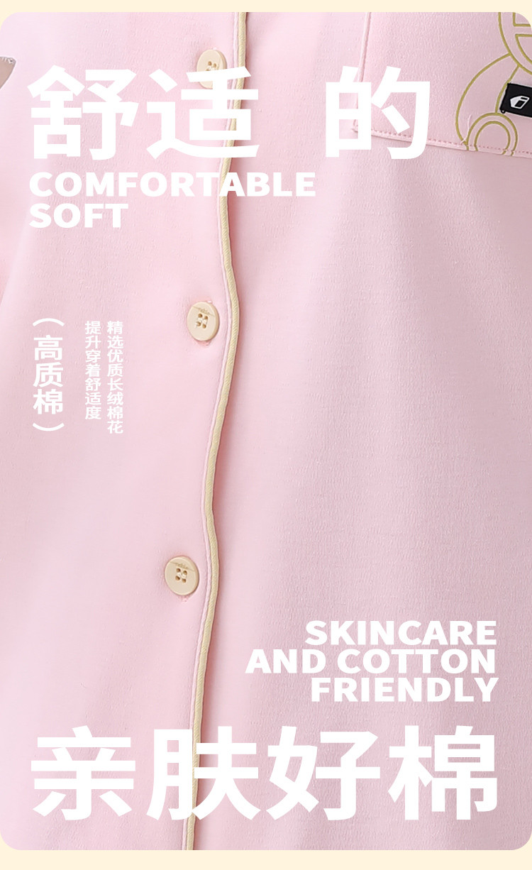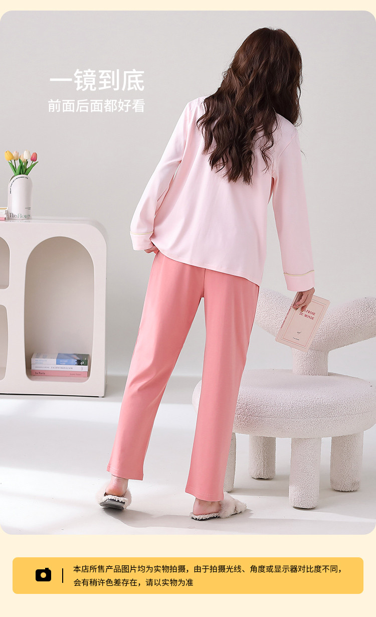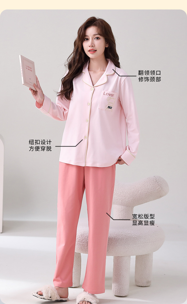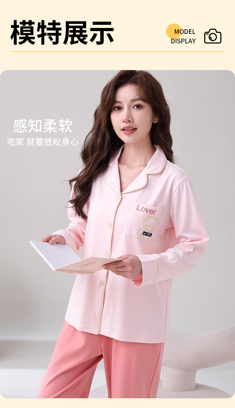 商品名称:【100%棉】翻领开衫睡衣女士春秋款亲肤纯棉家居服套装可外穿 315275
