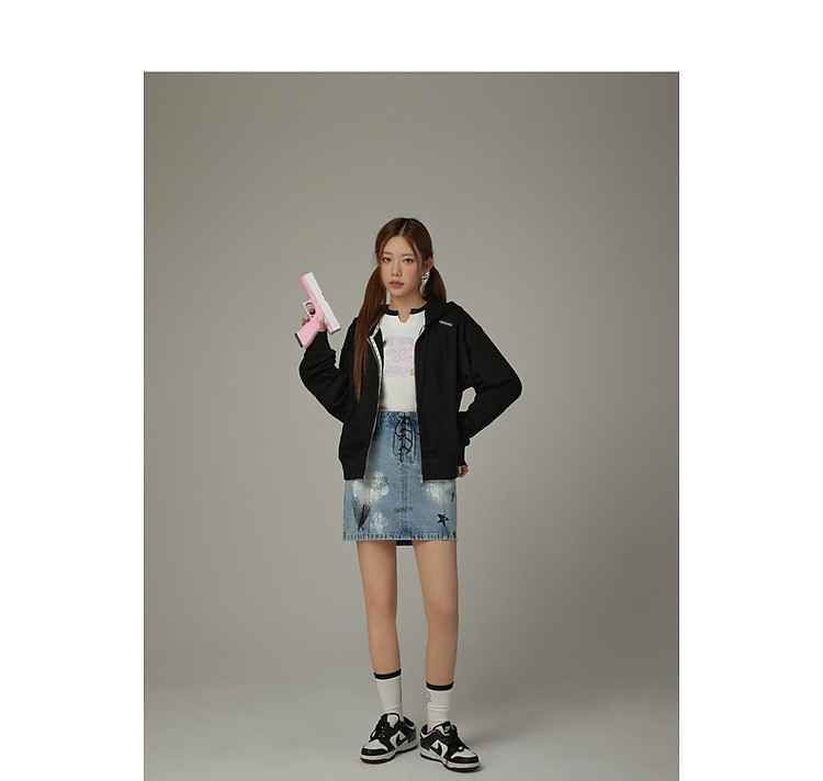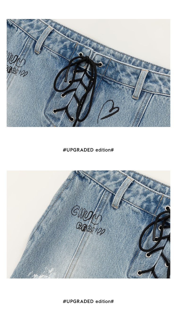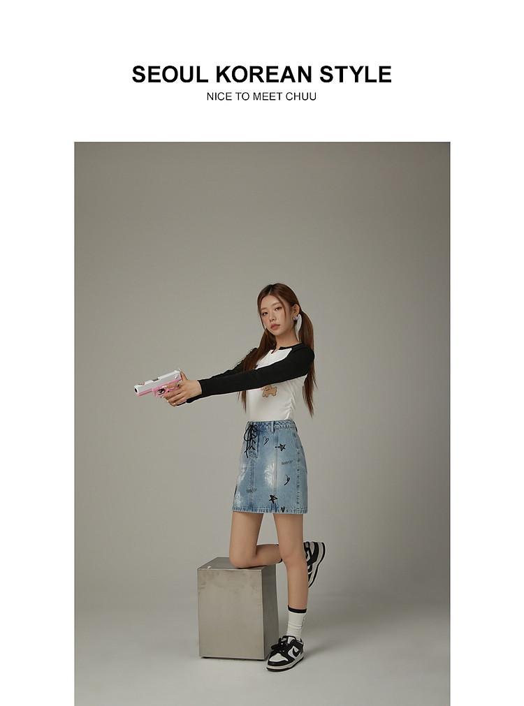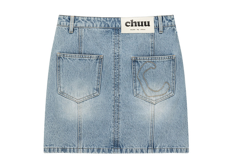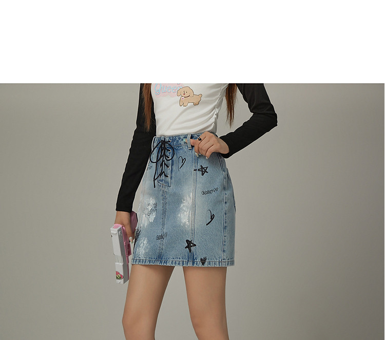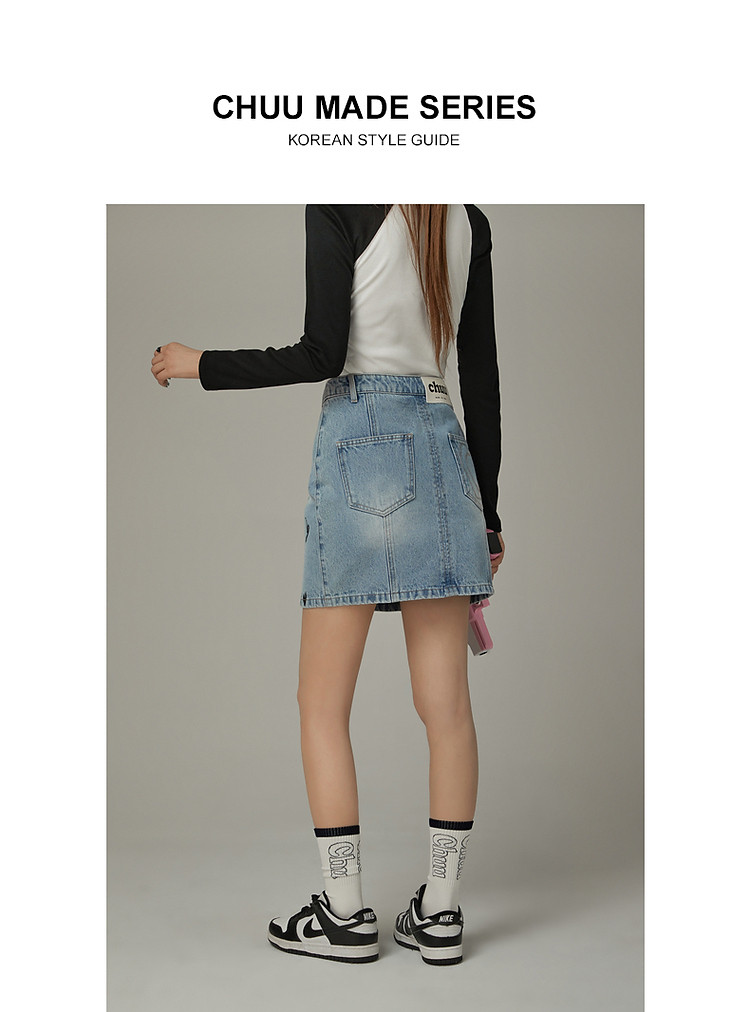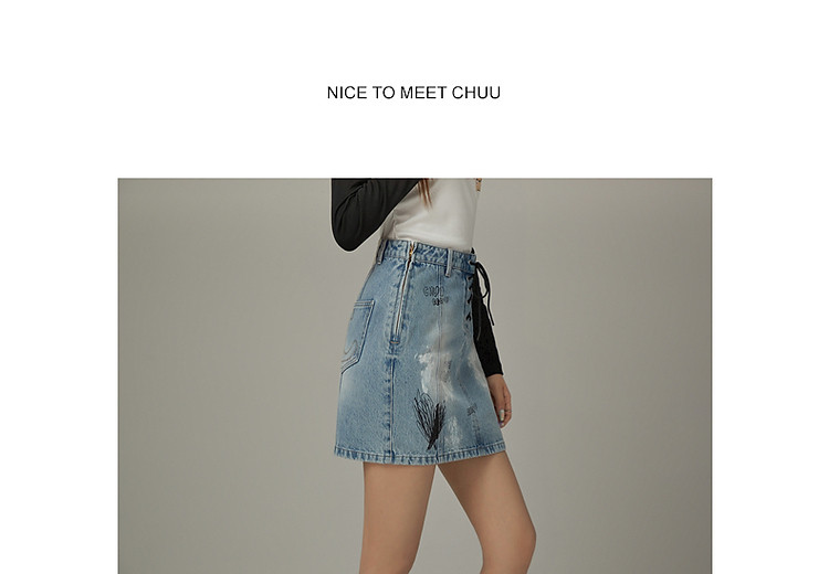 商品名称:CHUU字母印花牛仔半身裙女春秋系带拉链A字裙短裙 199635
