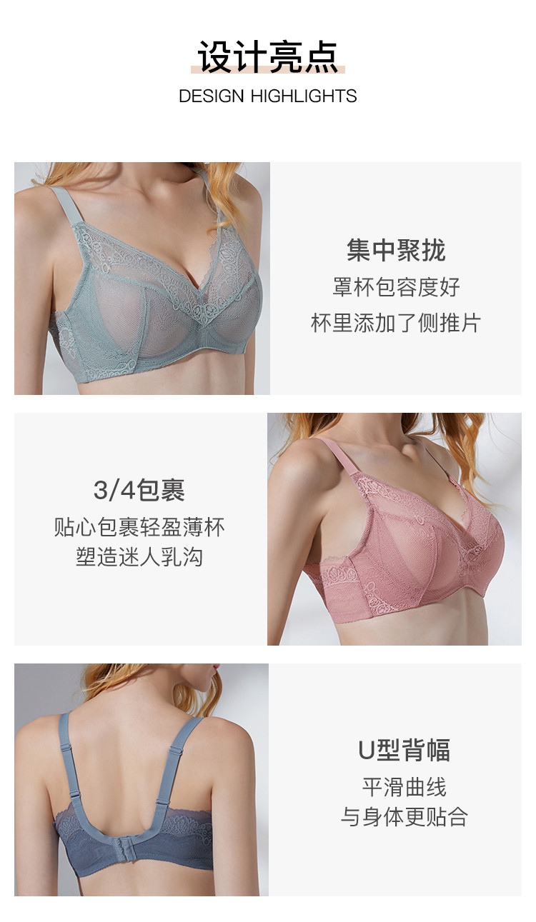 商品名称:【大胸包容】薄款网纱透气侧收聚拢上托性感文胸罩内衣女 546123