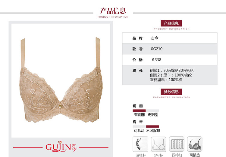 商品名称:【捡漏款】实体专柜同款大胸刺绣蕾丝薄款聚拢文胸胸罩内衣女 522891