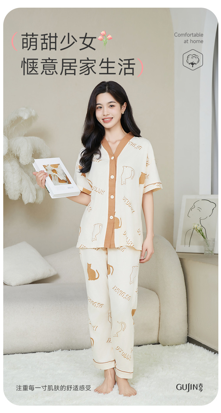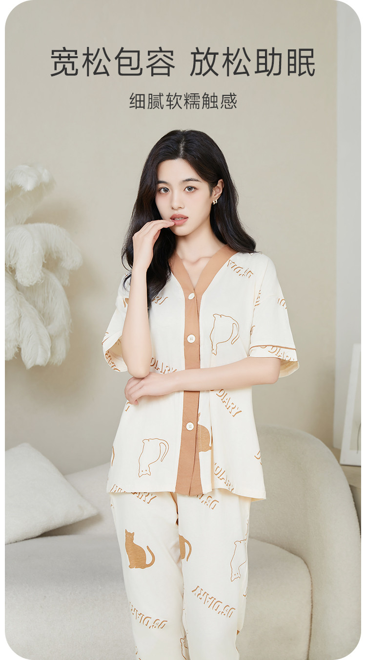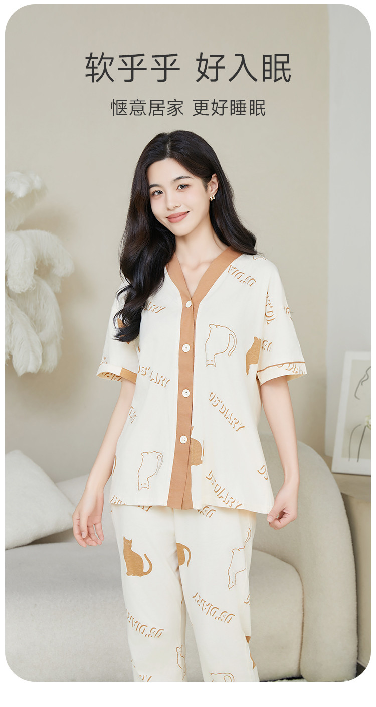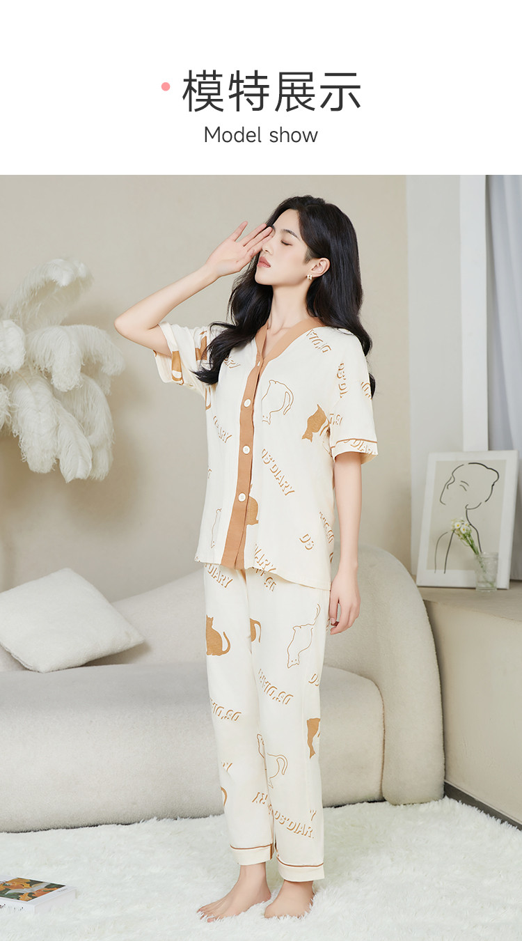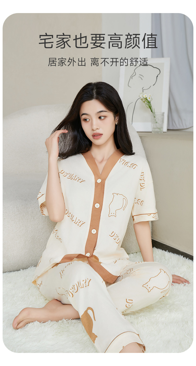 【断码捡漏纯棉】女士睡衣夏季薄款家居服两件套高级感纯棉睡衣女 801355