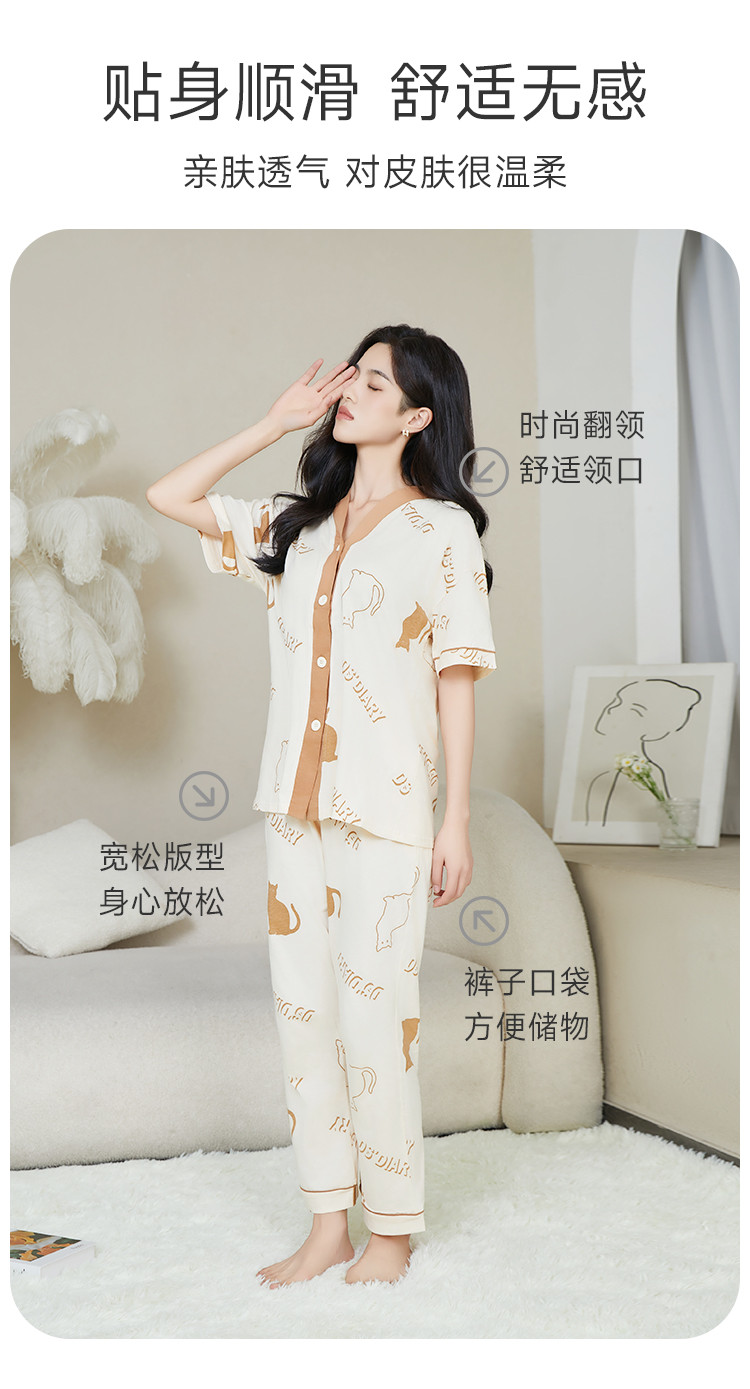 商品名称:【断码捡漏纯棉】女士睡衣夏季薄款家居服两件套高级感纯棉睡衣女 801355