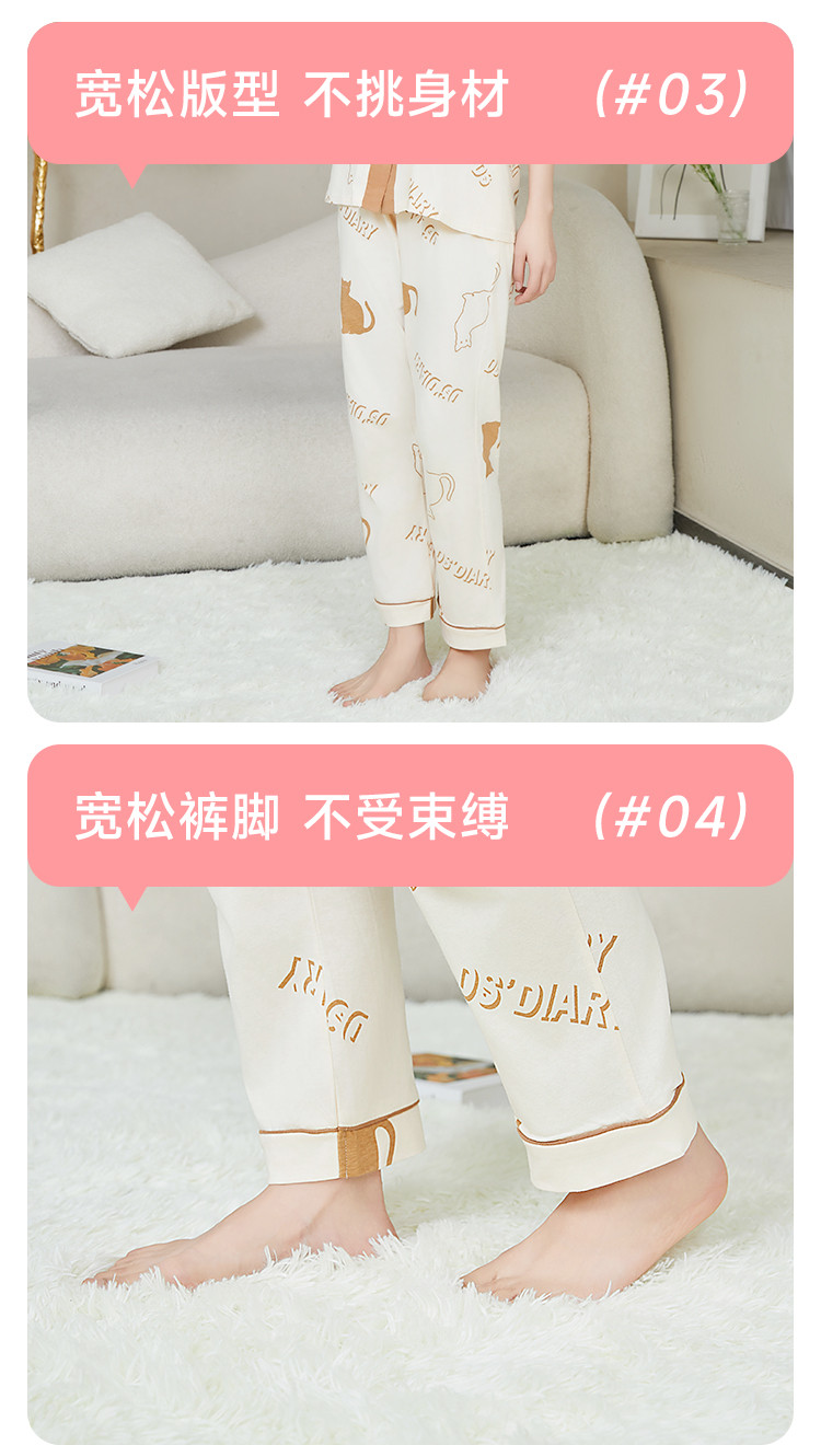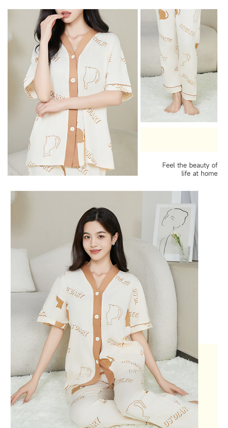 【100%棉】翻领开衫睡衣女士春秋款亲肤纯棉家居服套装可外穿 315275