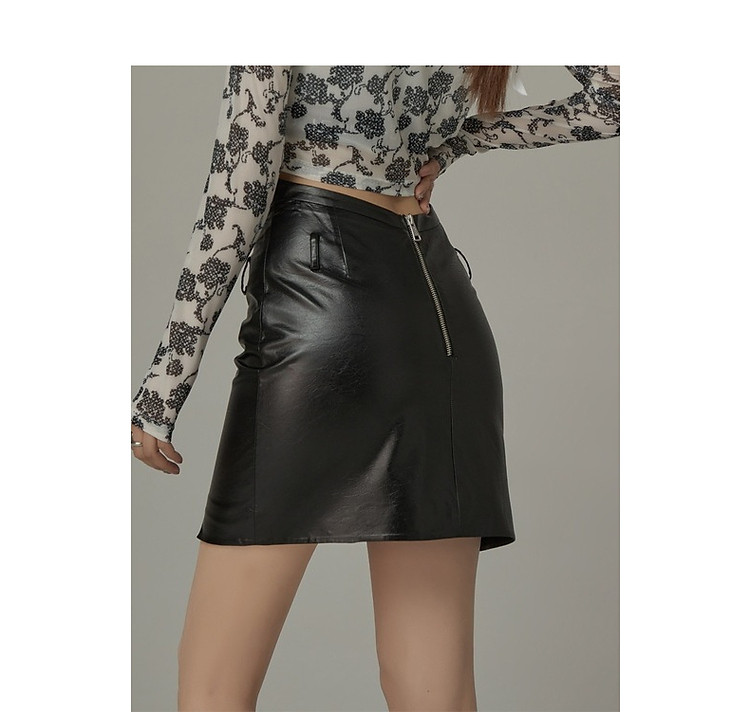 商品名称:潮酷PU皮半身裙女春夏设计感个性显瘦高腰包臀短裙 346579