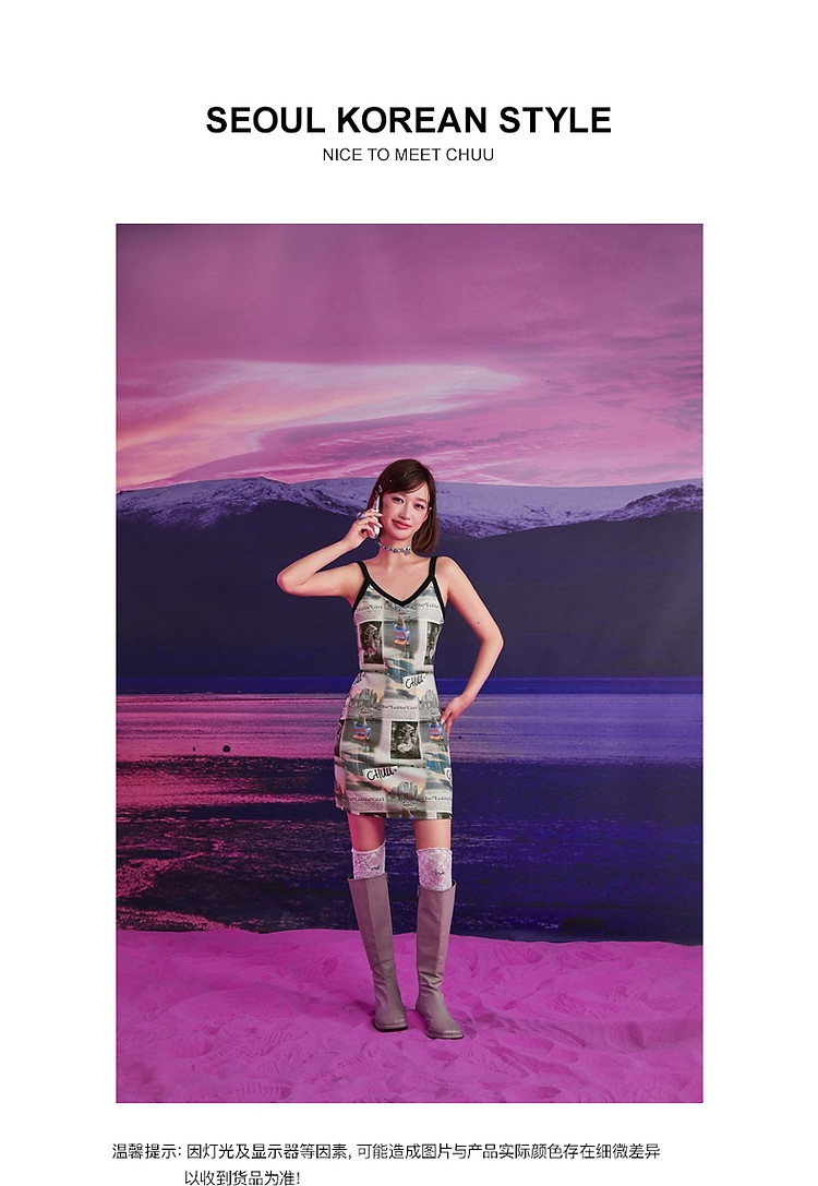 商品名称:CHUU印花吊带连衣裙女春秋辣妹个性背心裙V领短裙 145875