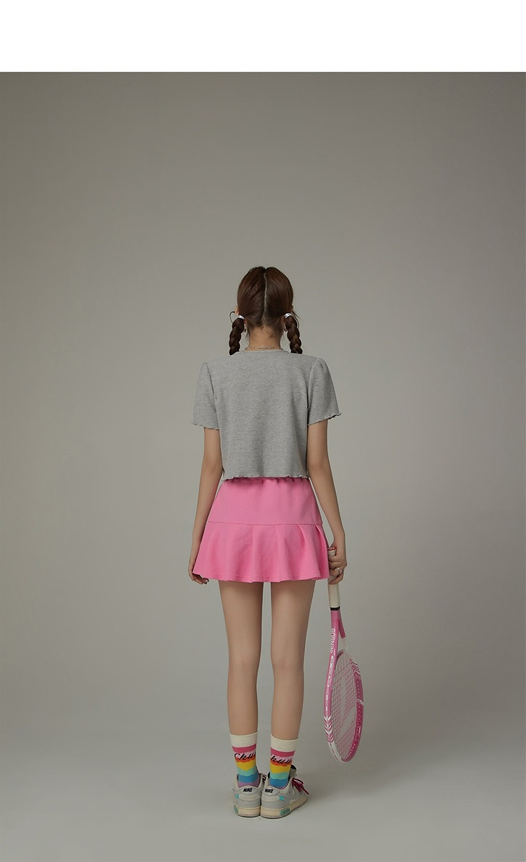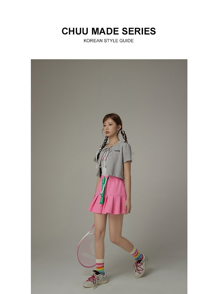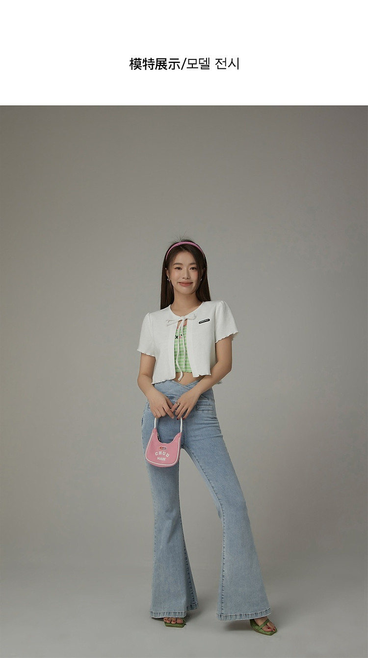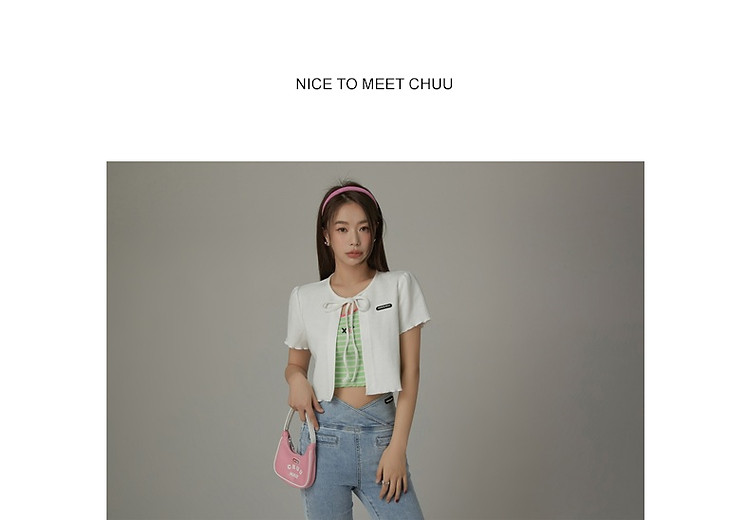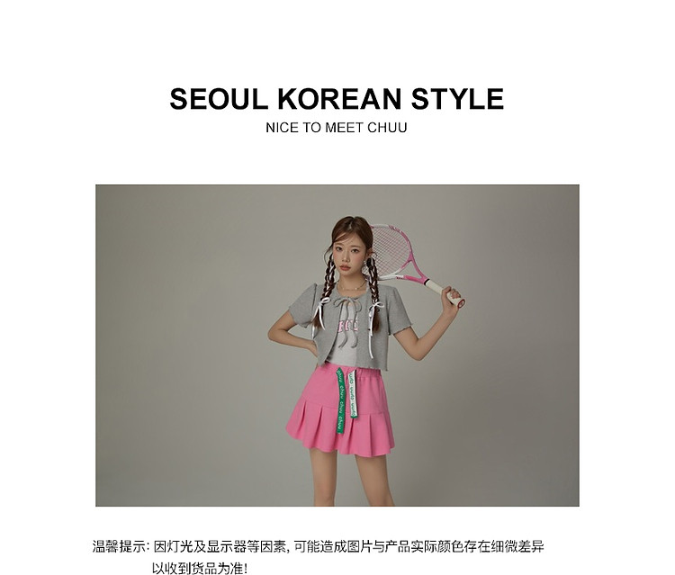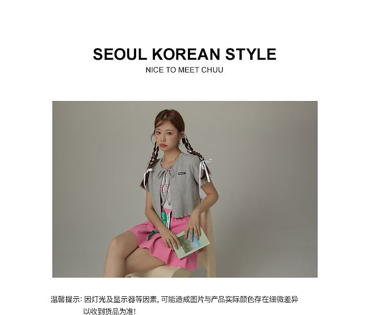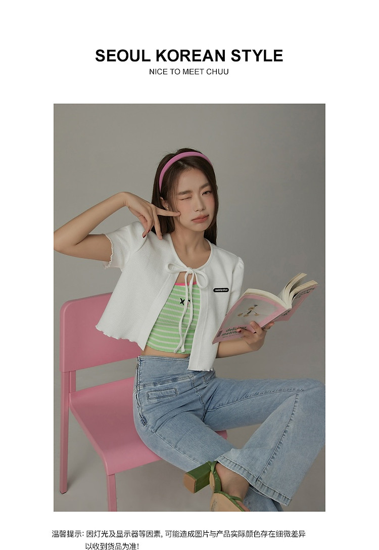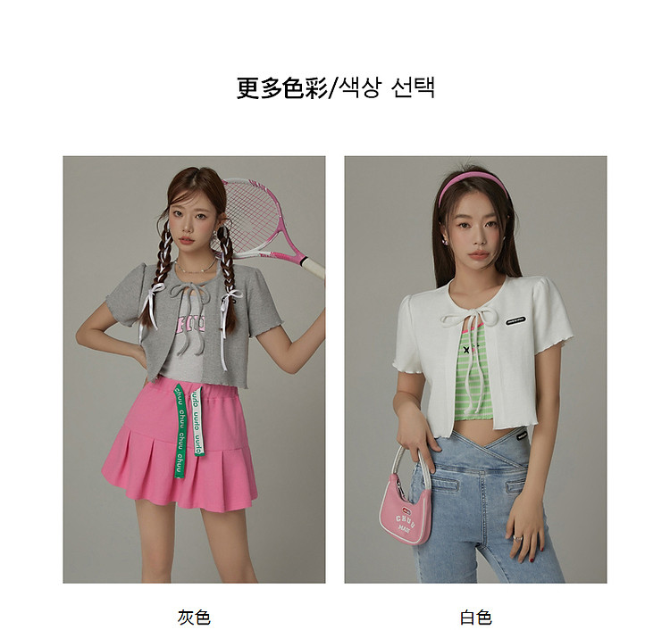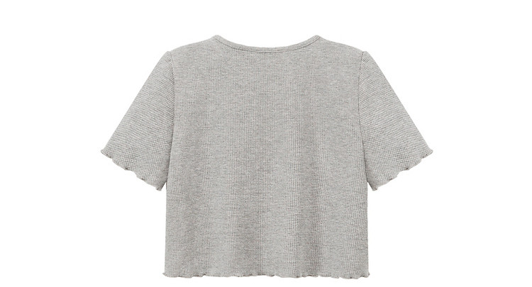 商品名称:华夫格系带外套女士春夏小香风木耳边纯色短袖上衣 947347