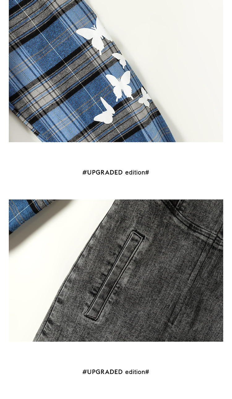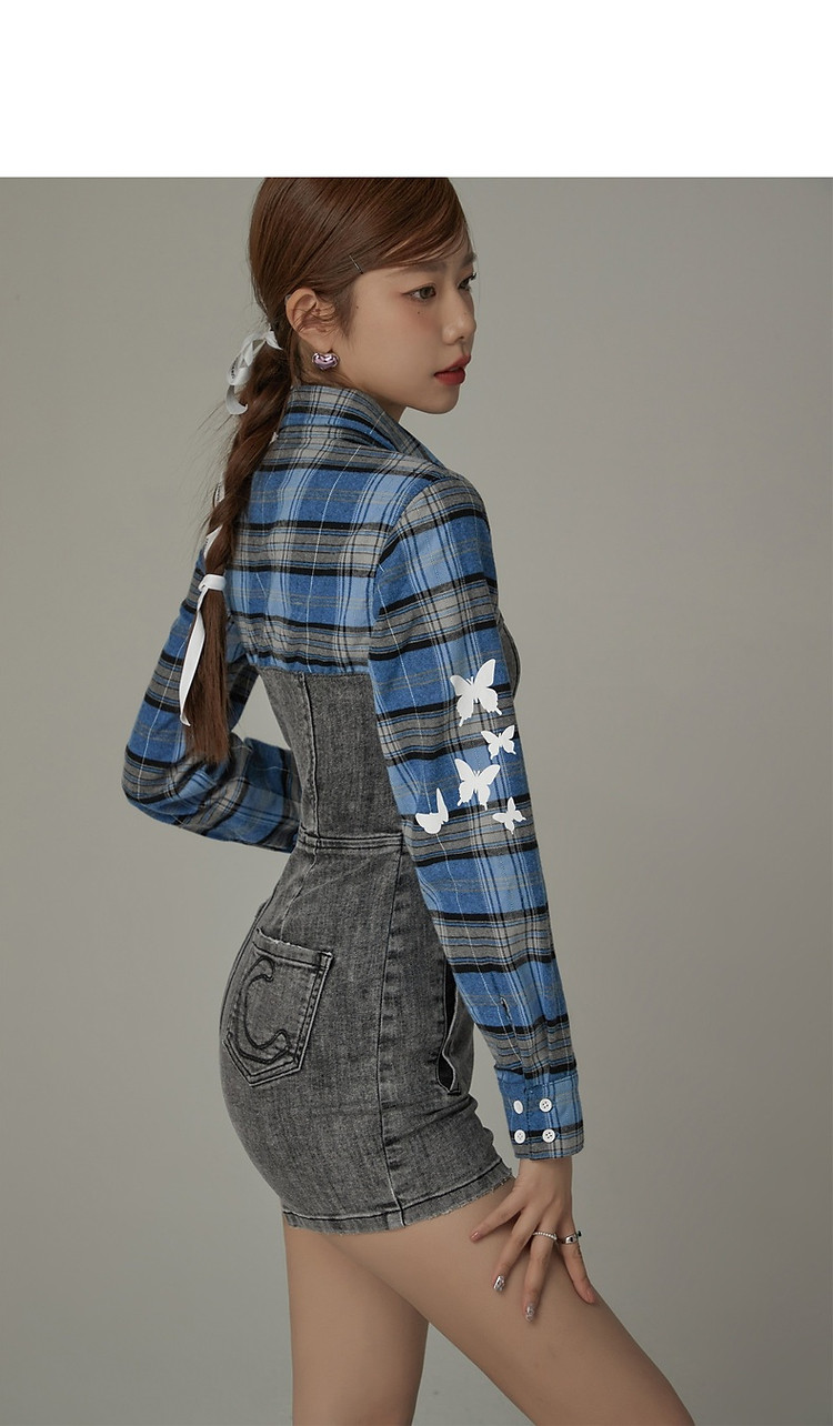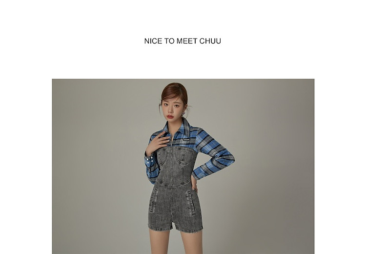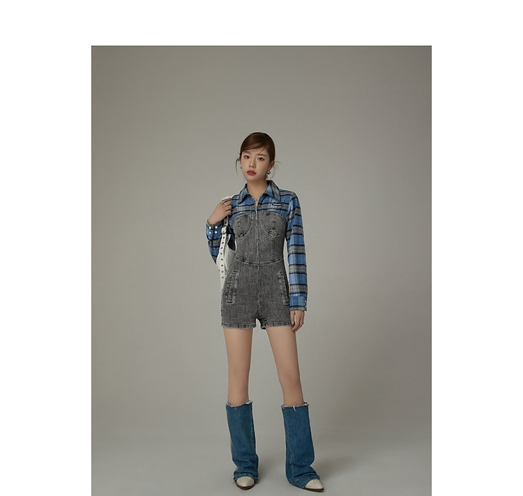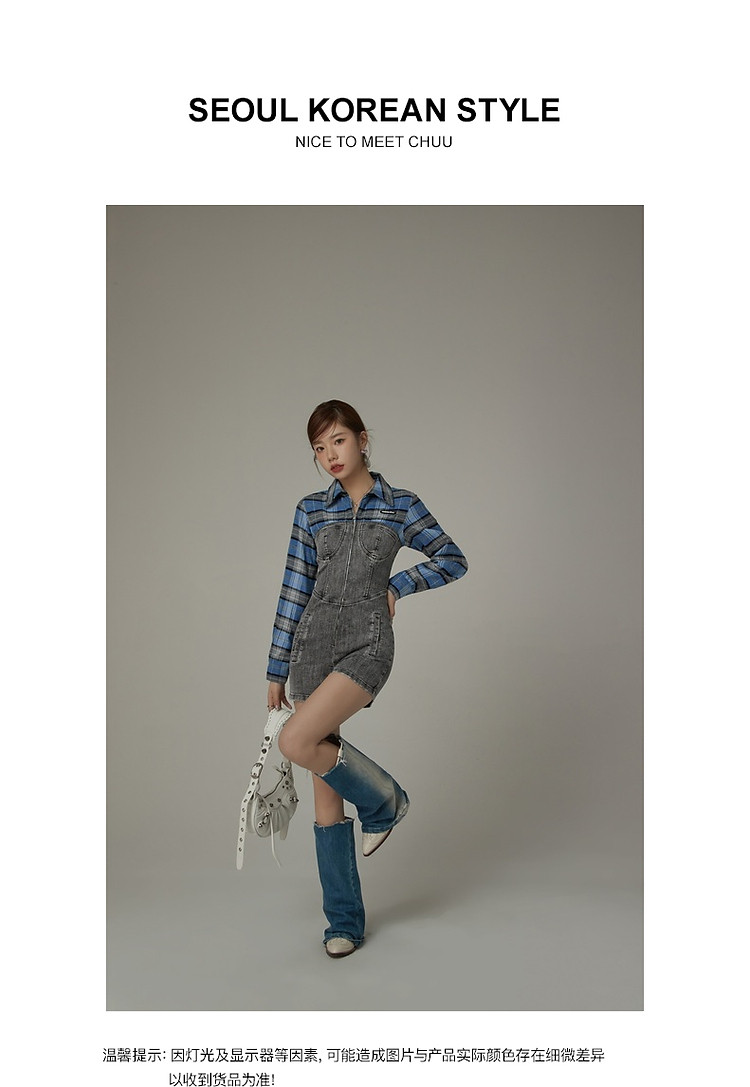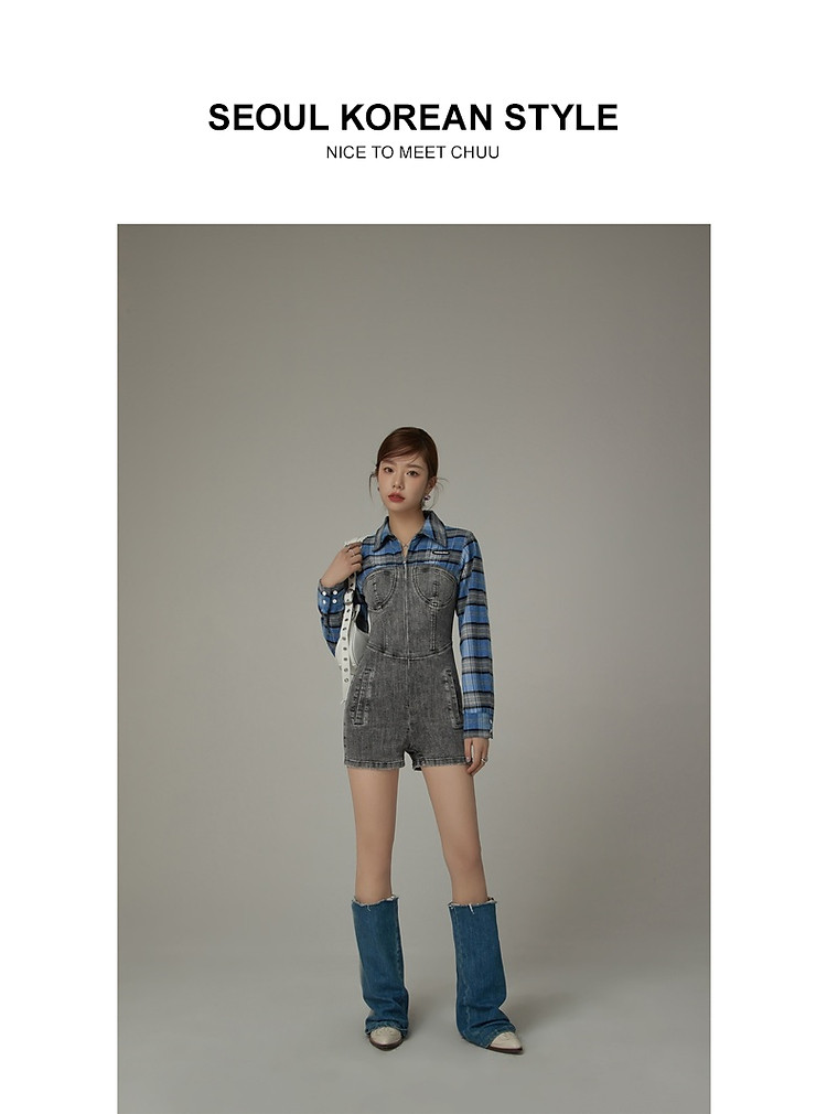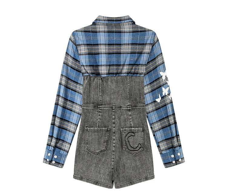 格子衬衫拼接连体裤女夏休闲个性设计感短裤 697555