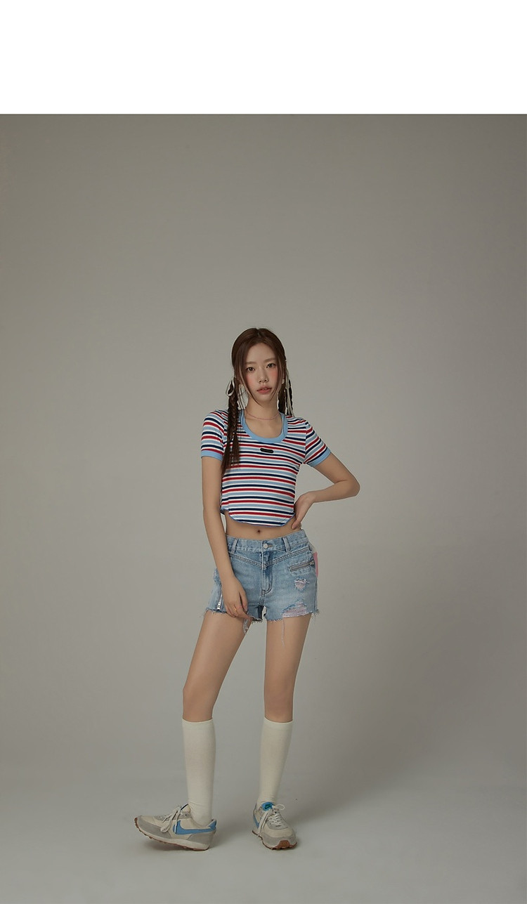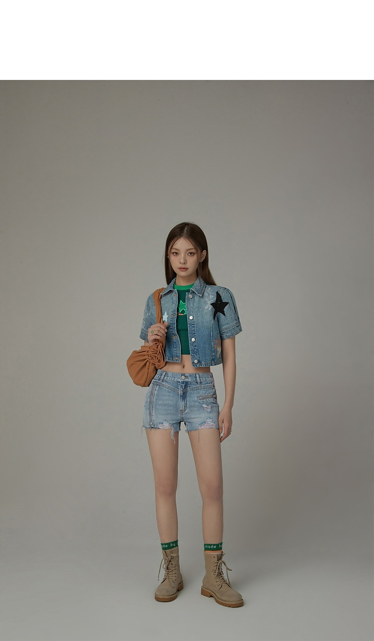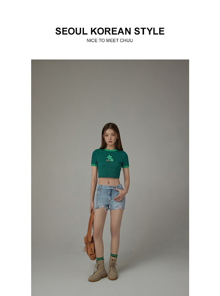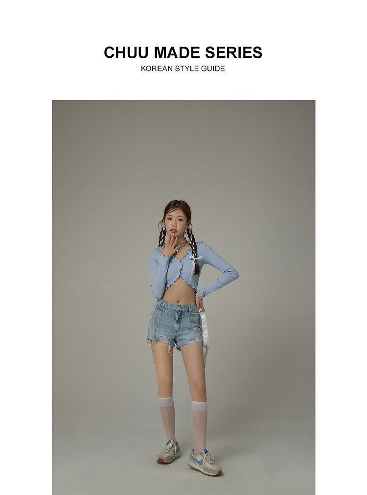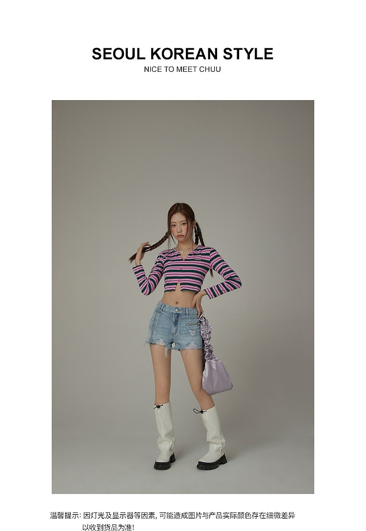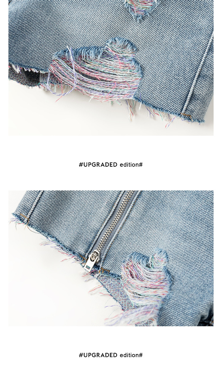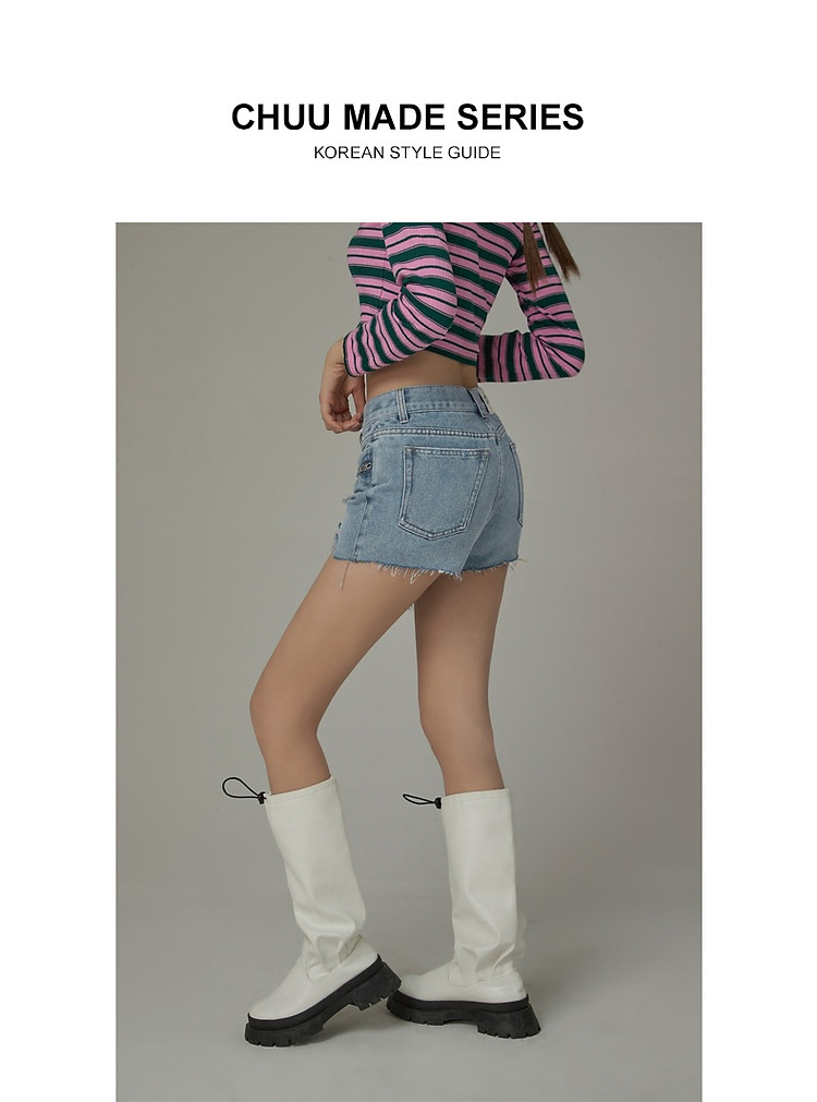 商品名称:CHUU拉链破洞牛仔短裤女夏季毛边高腰显瘦裤子 021395