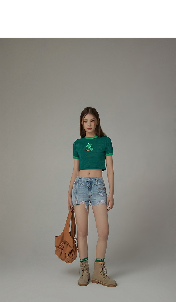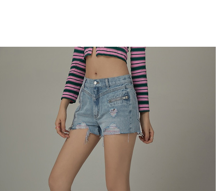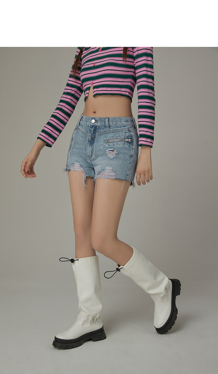 CHUU拉链破洞牛仔短裤女夏季毛边高腰显瘦裤子 021395
