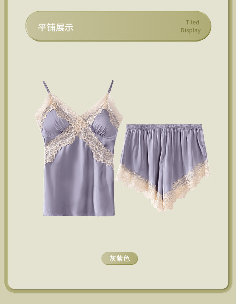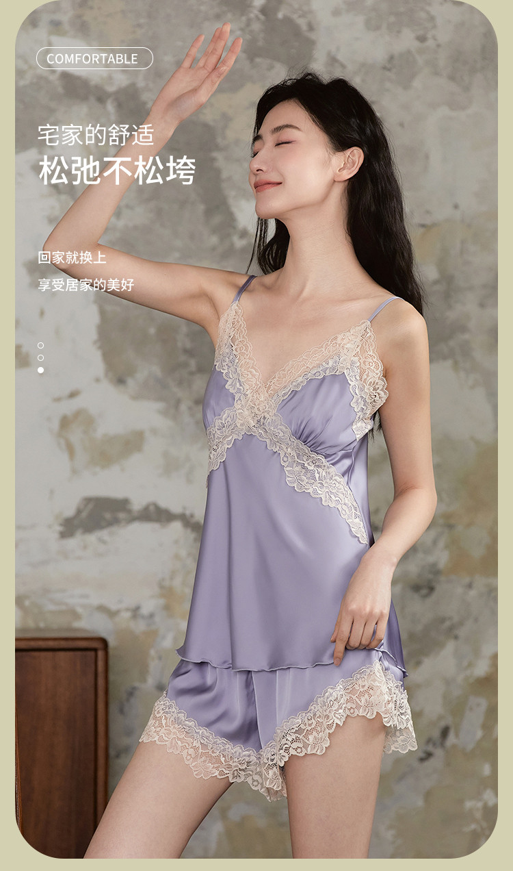 【性感纯欲吊带套装】女V领蕾丝花边夏季家居服带胸垫轻奢睡衣 472843