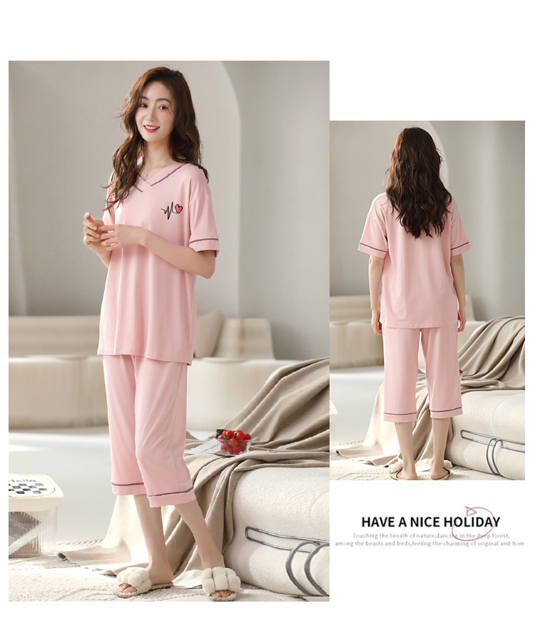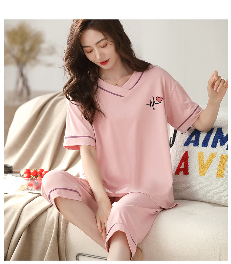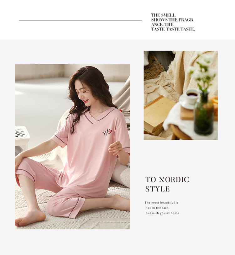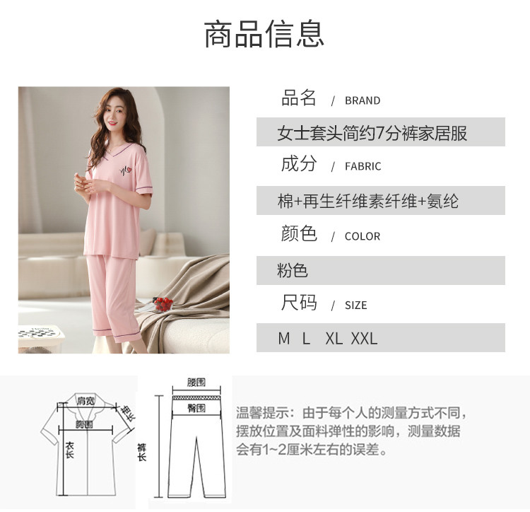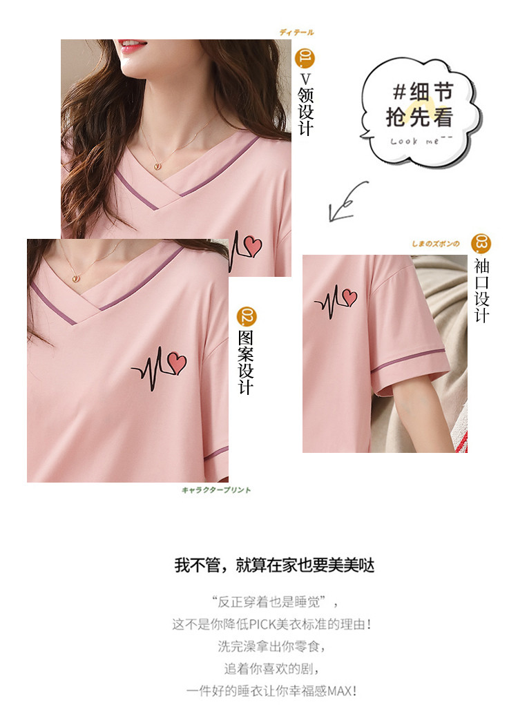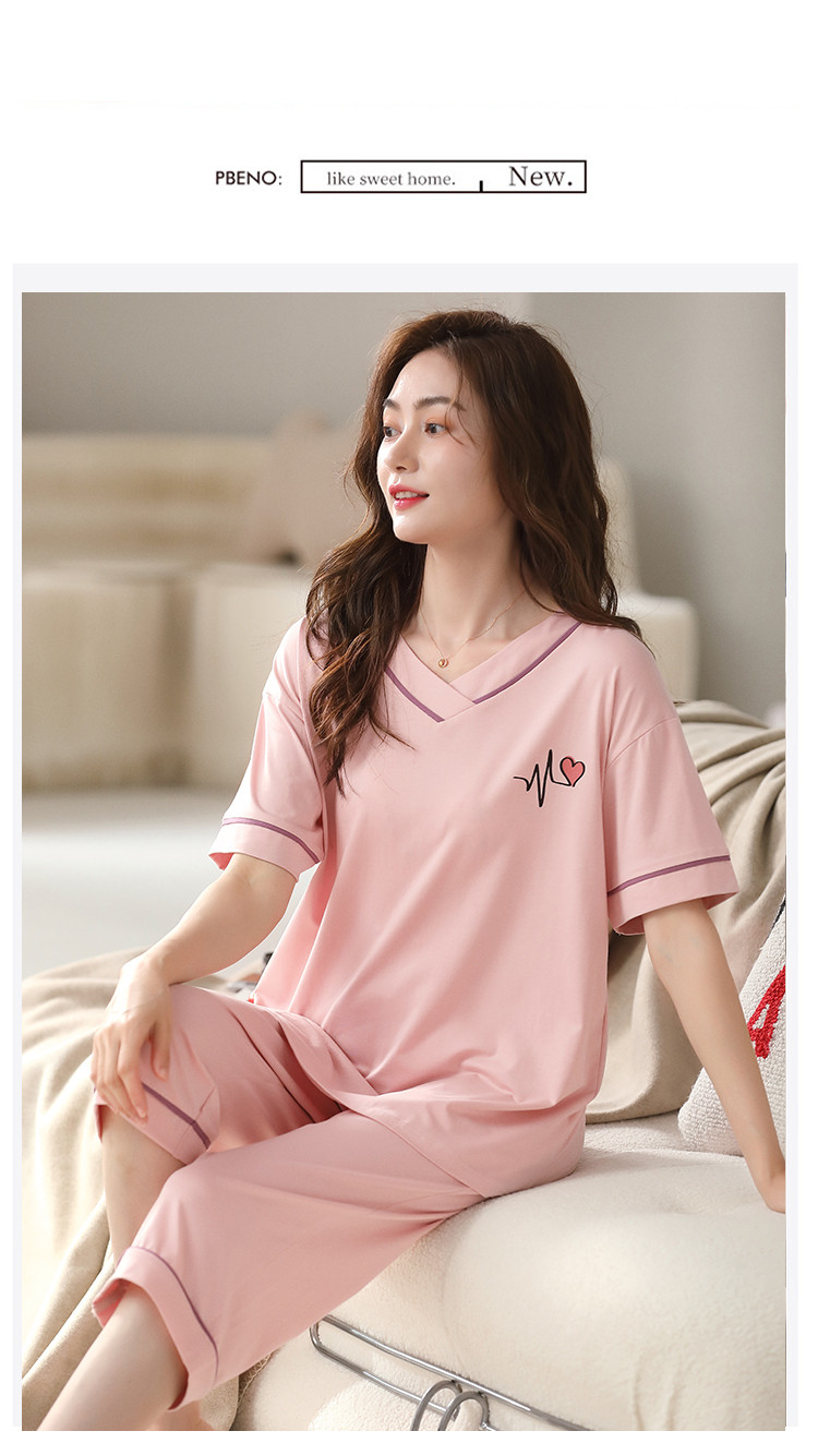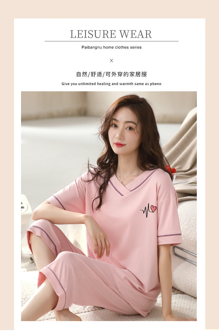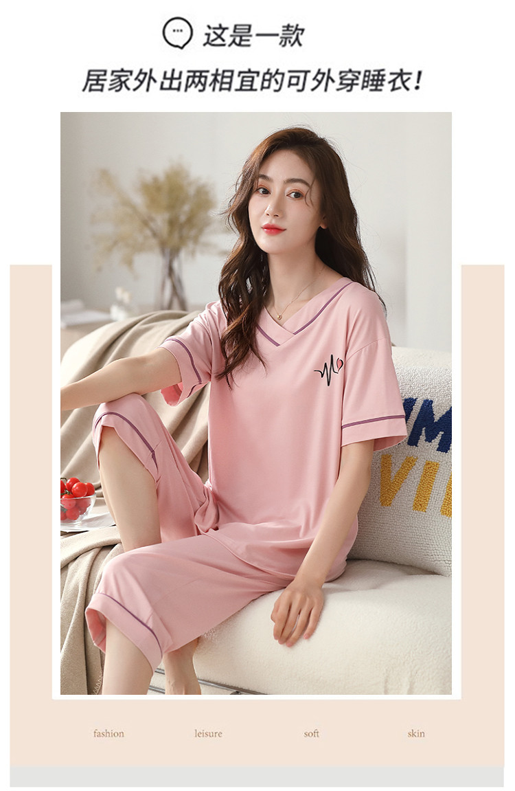 商品名称:【优雅V领】简约套头宽松可爱睡衣女可外穿7分裤女士家居服 196958