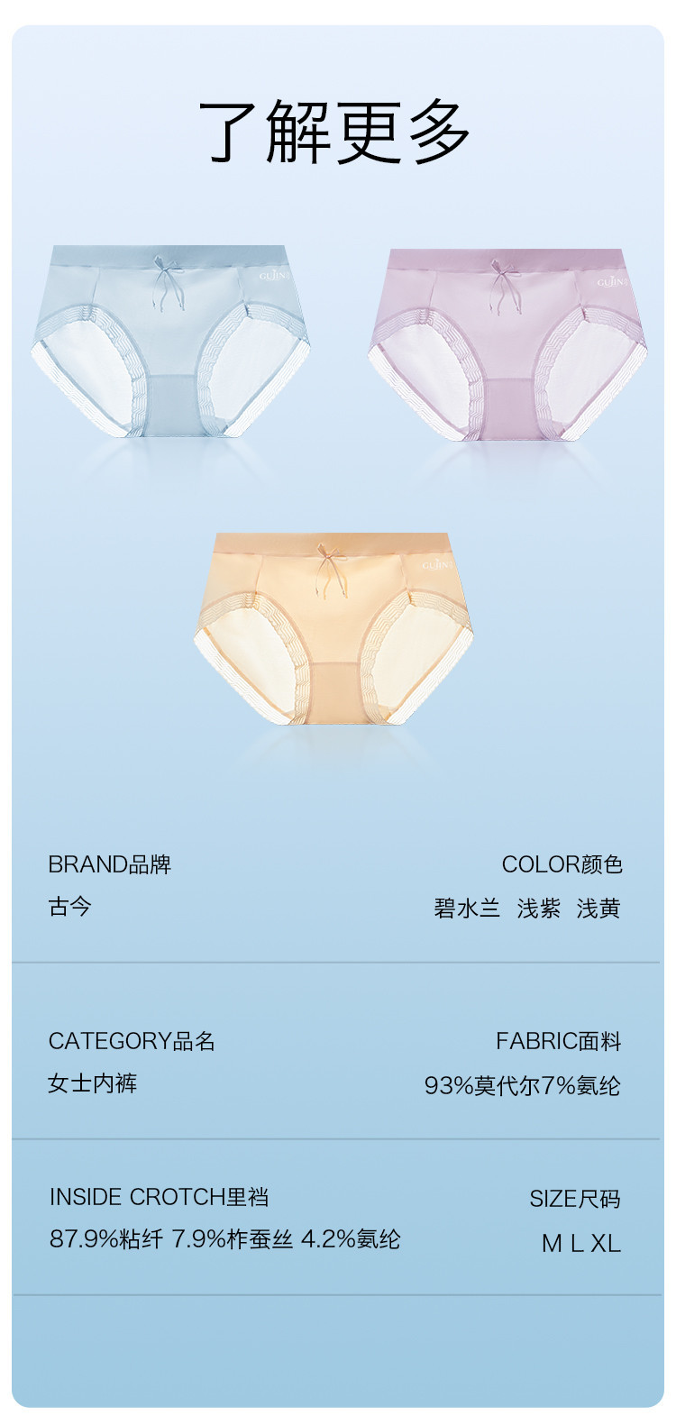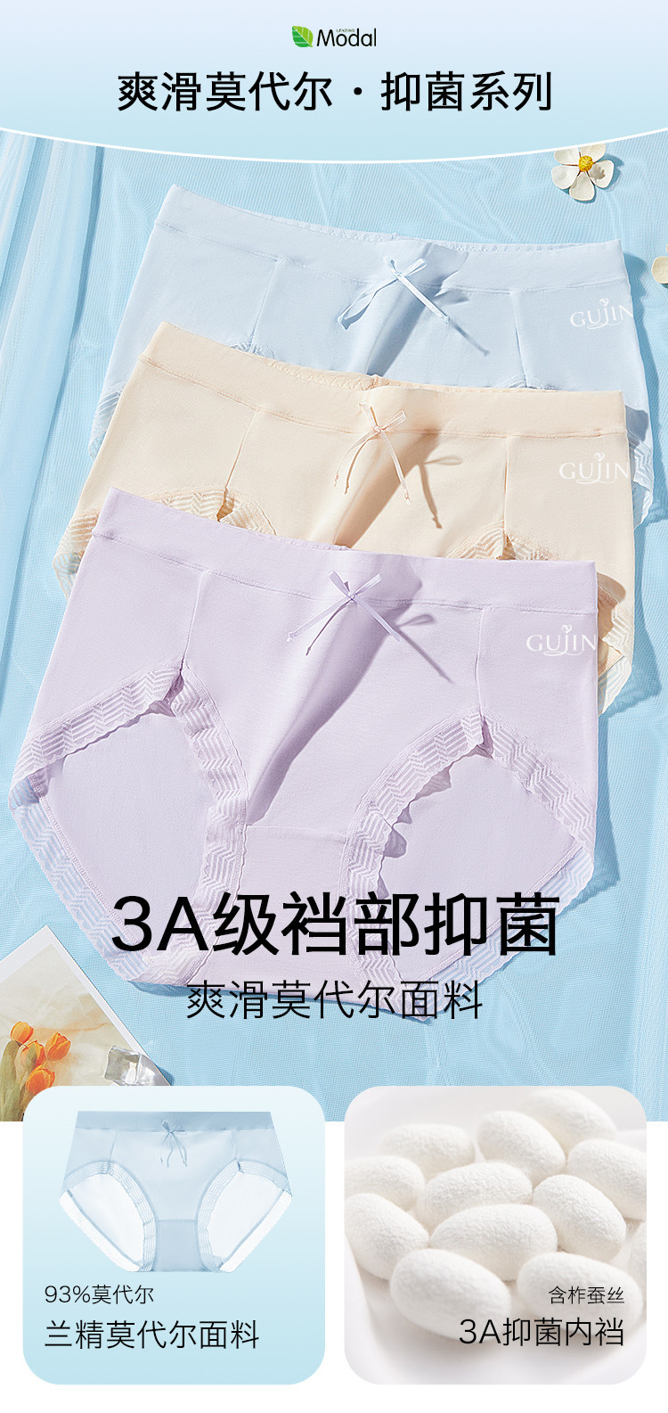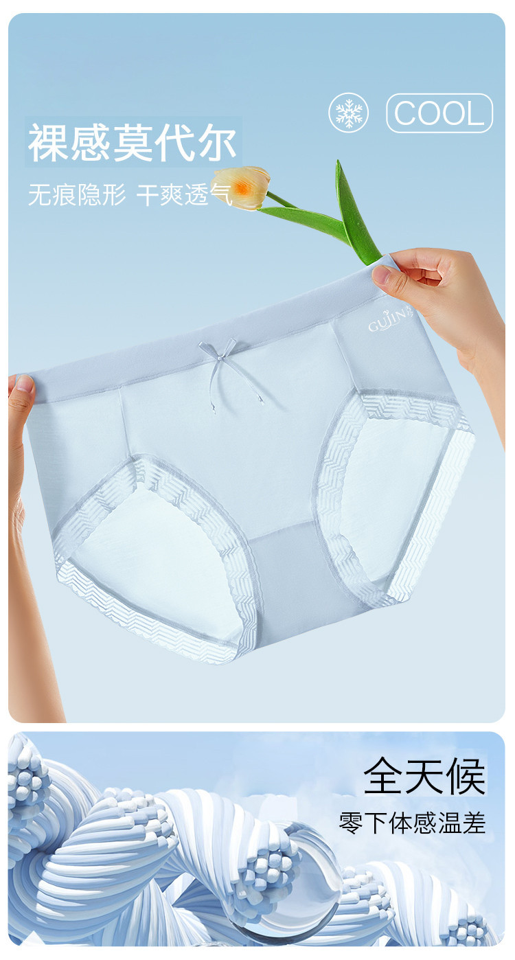 商品名称:【3A抑菌莫代尔】含柞蚕丝裸感透气女士内裤裸感春无痕内裤女 857675