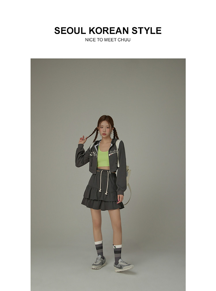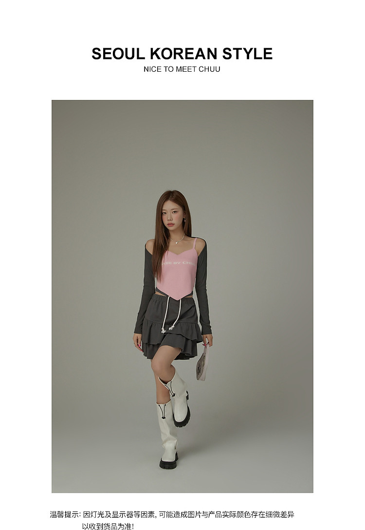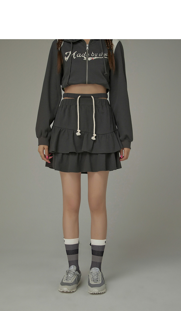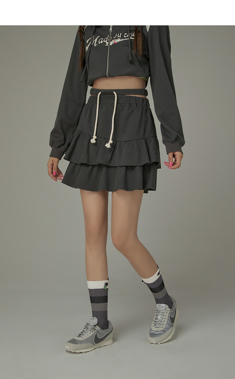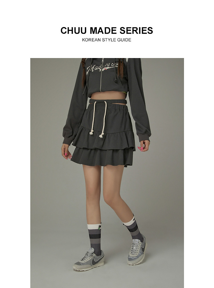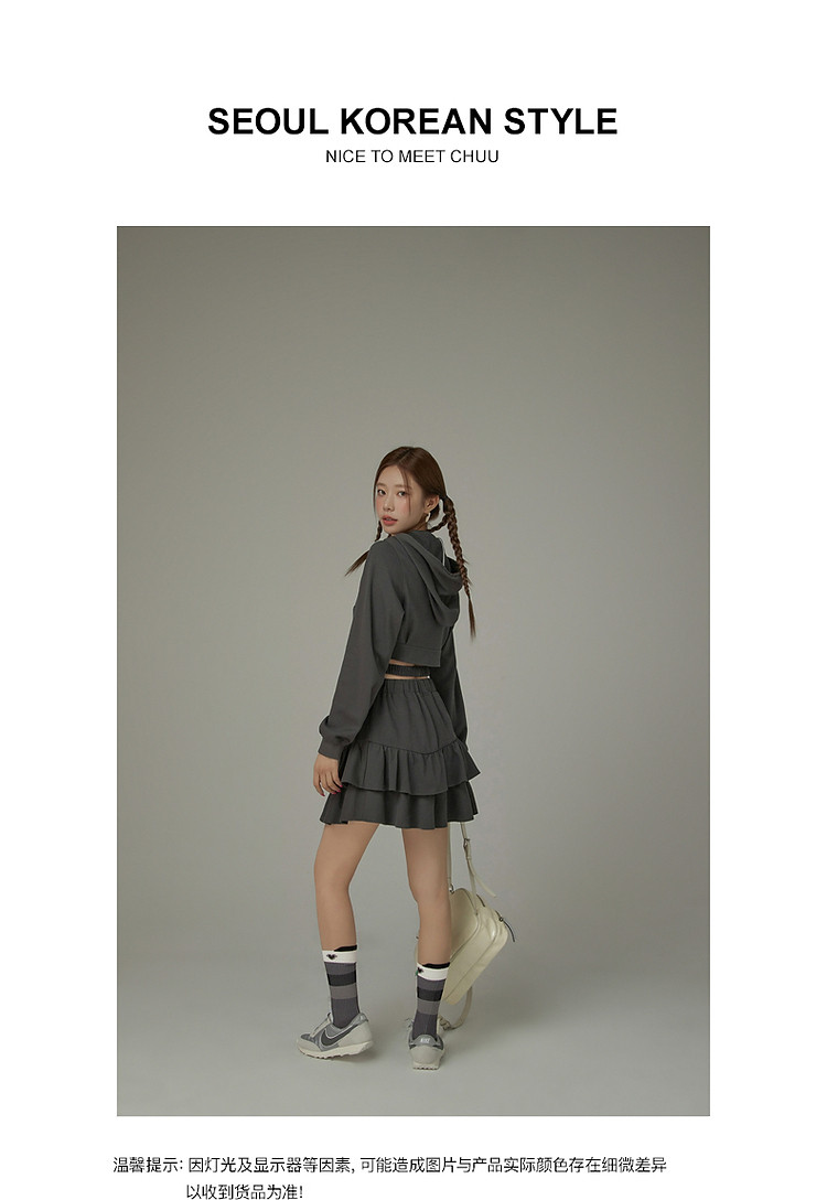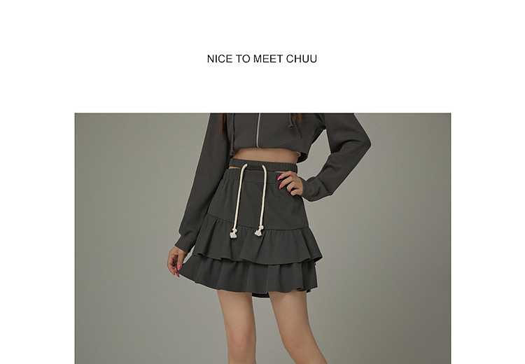 商品名称:CHUU镂空半身裙女春秋木耳边蛋糕裙a字包臀短裙子 408531