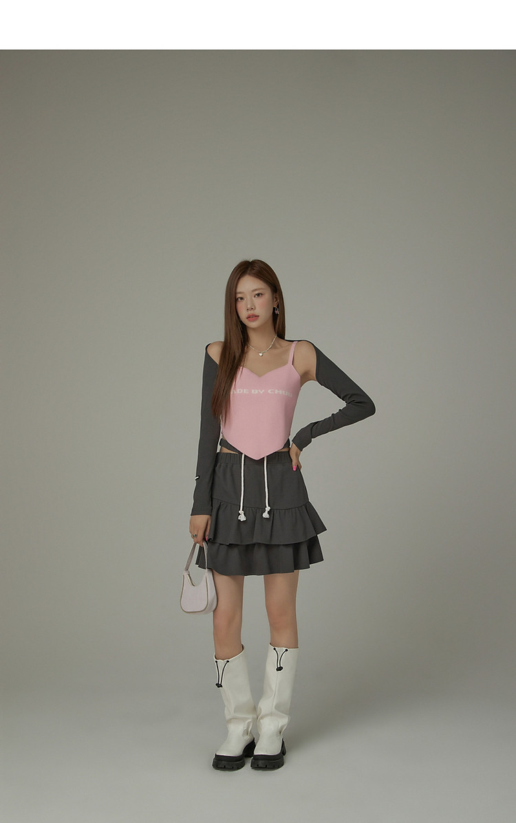 CHUU镂空半身裙女春秋木耳边蛋糕裙a字包臀短裙子 408531