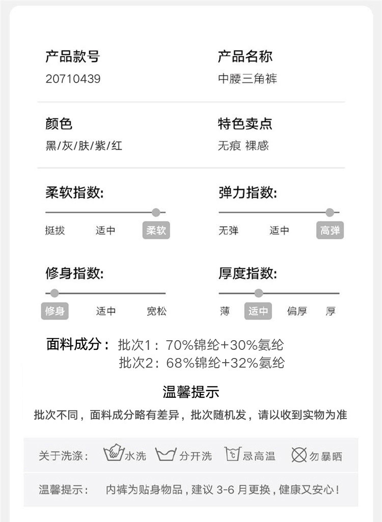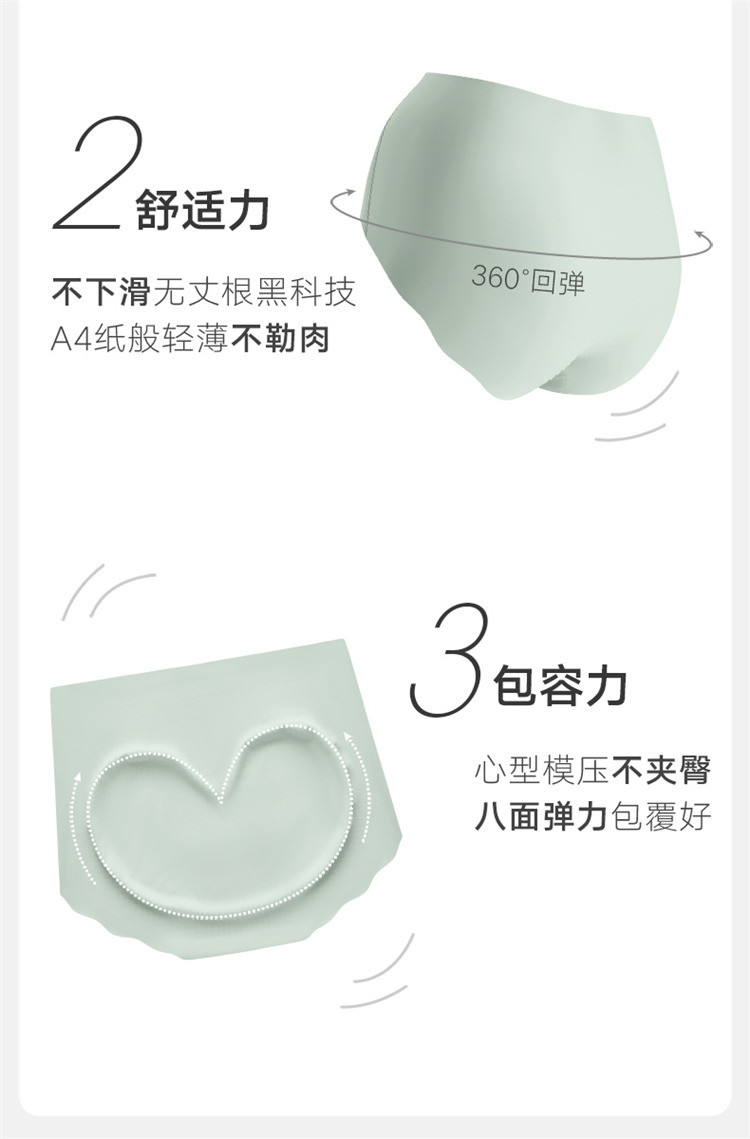 商品名称:【3条装抑菌内档】无痕隐形不卷边高弹透气包臀中腰收腹提臀内裤 067035