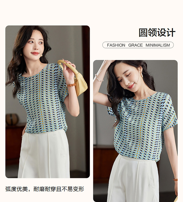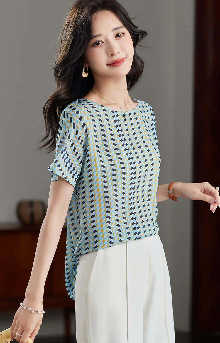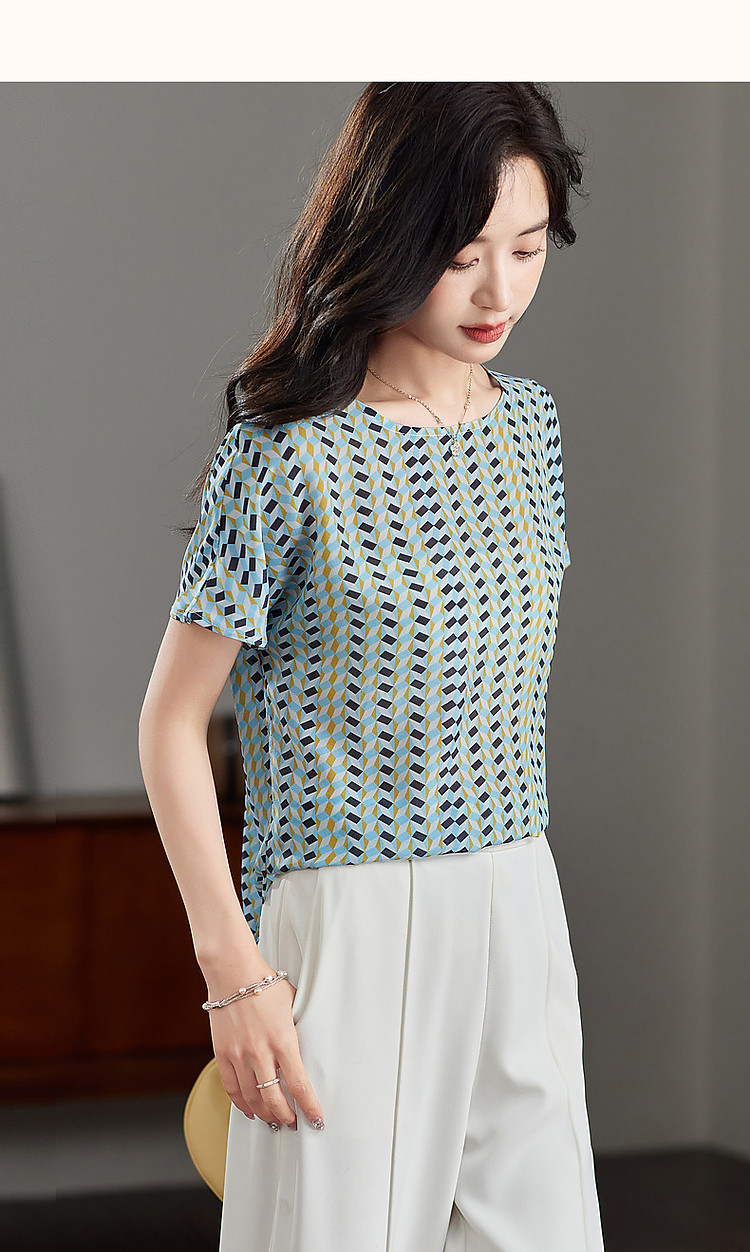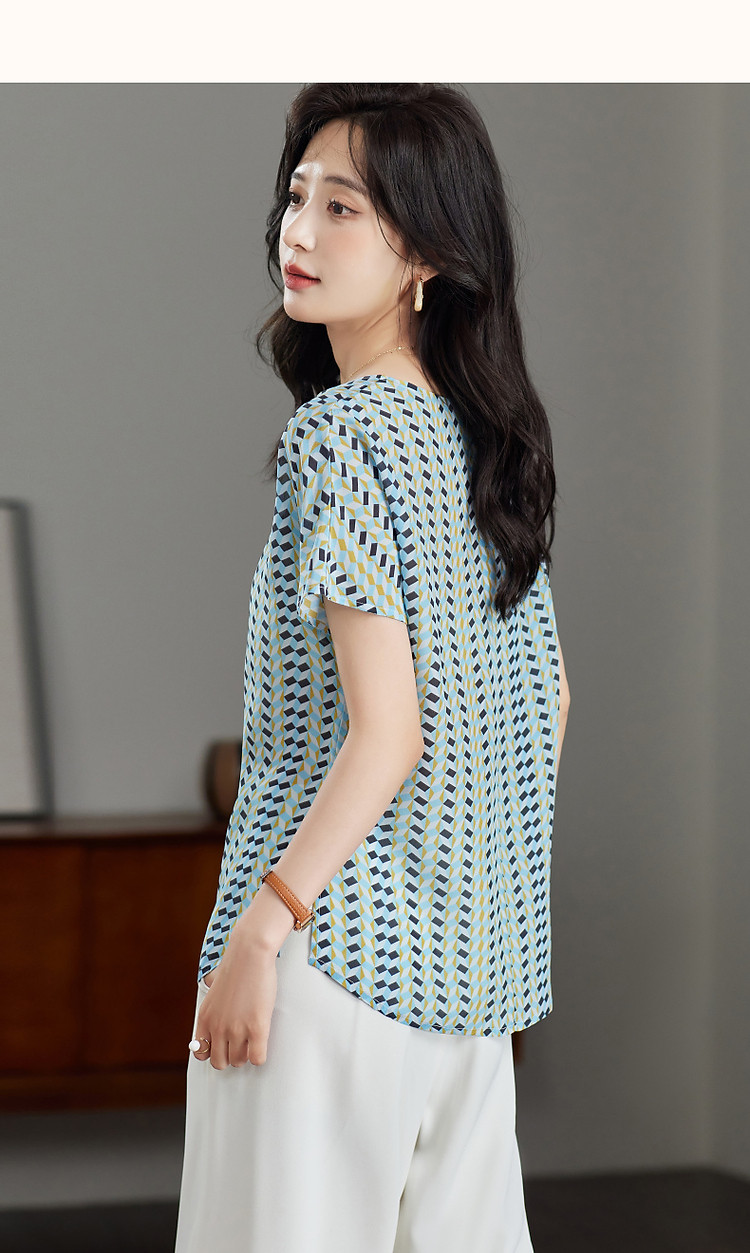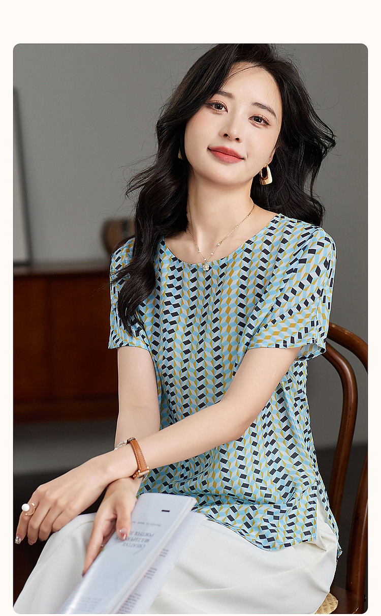 商品名称:【真丝俱乐部】夏轻氧感桑蚕丝印花衬衫开叉衬衣女装上衣 378177