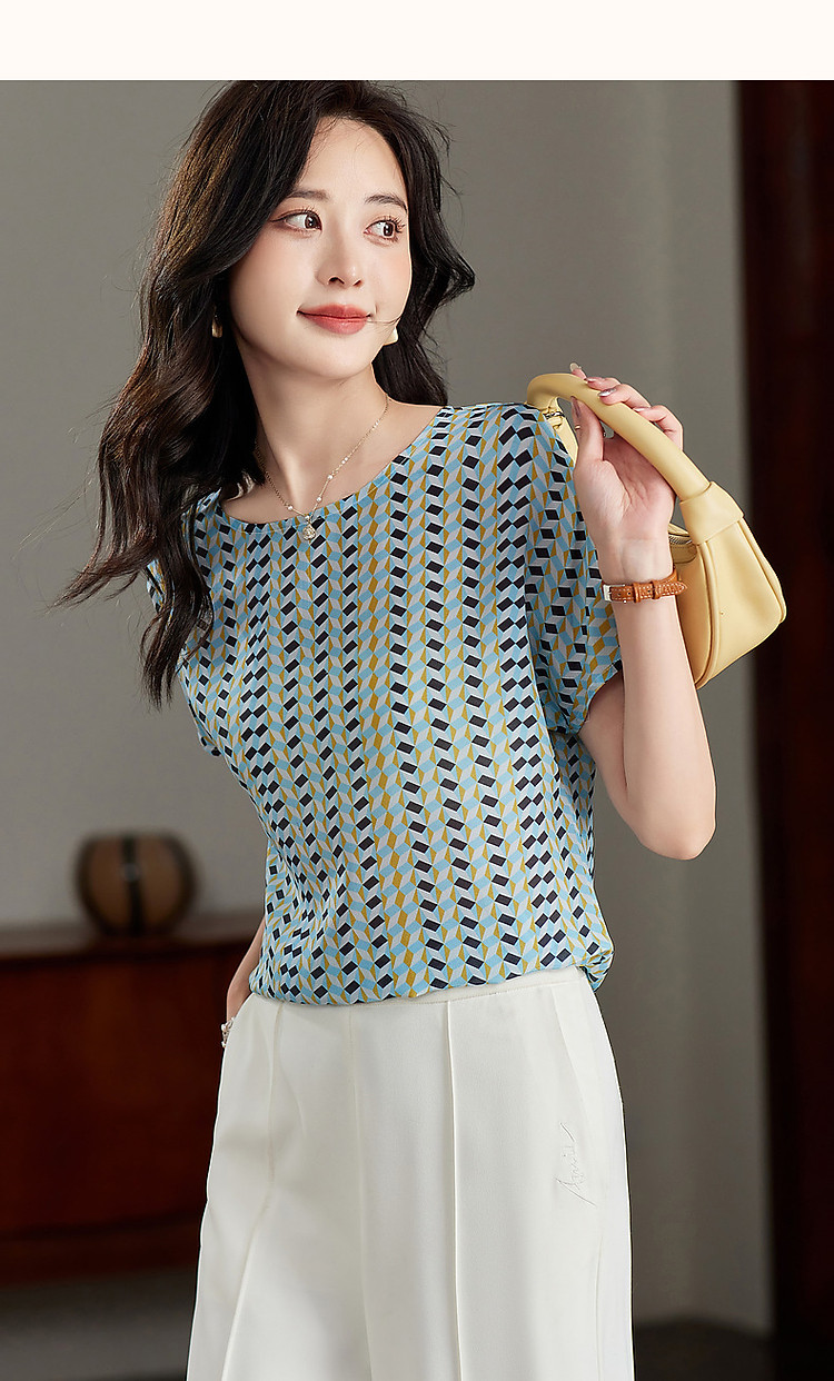 【真丝俱乐部】夏轻氧感桑蚕丝印花衬衫开叉衬衣女装上衣 378177