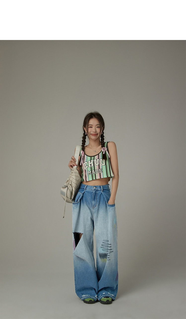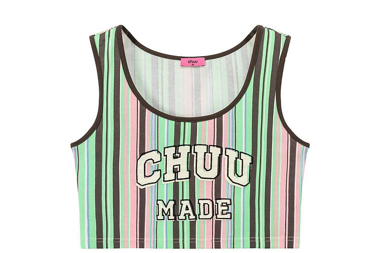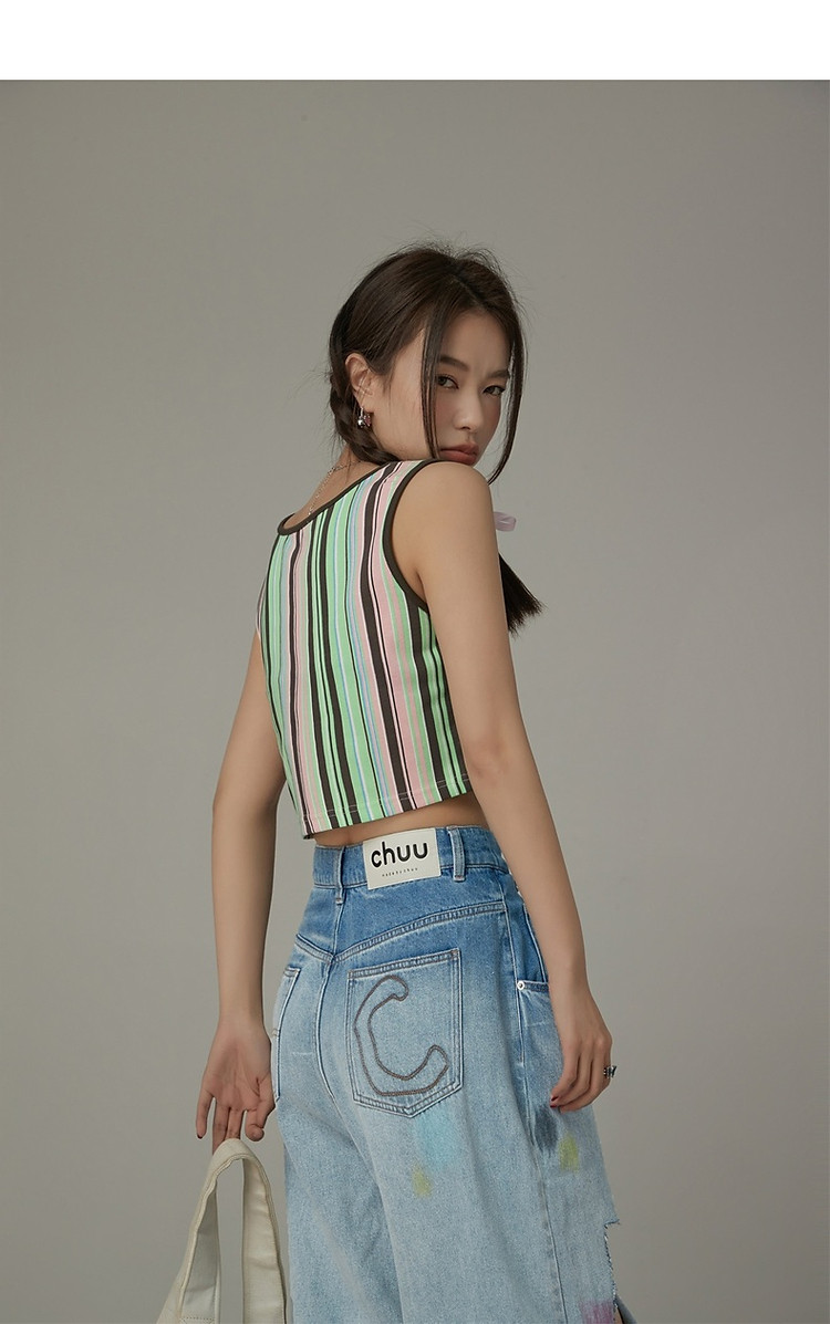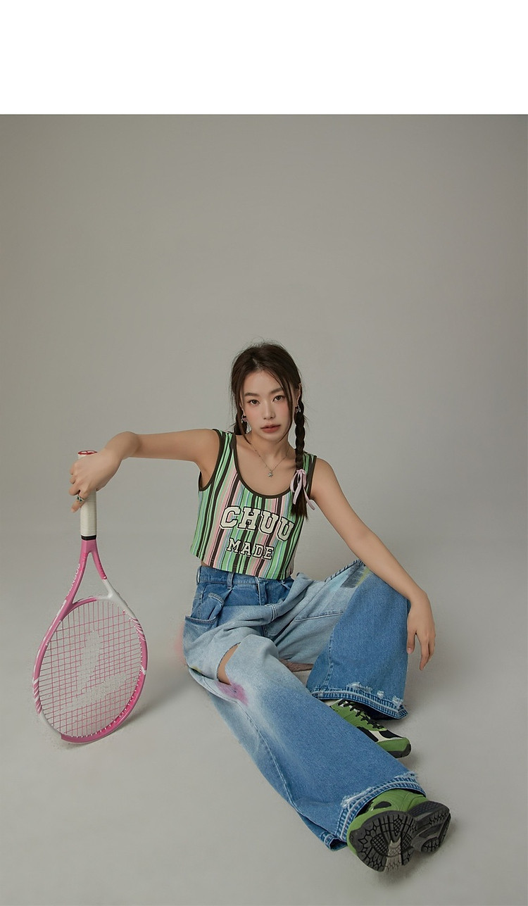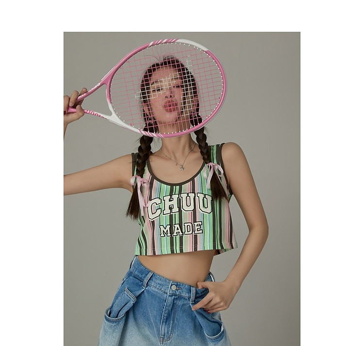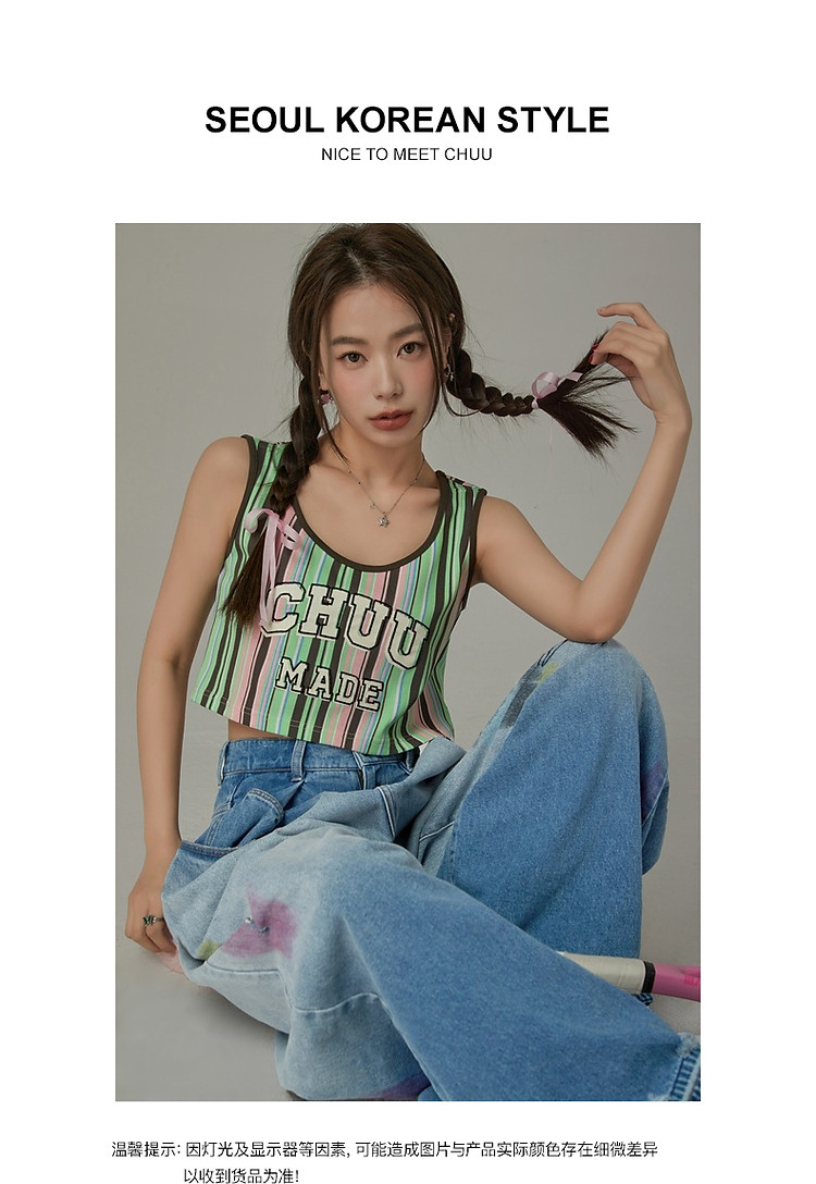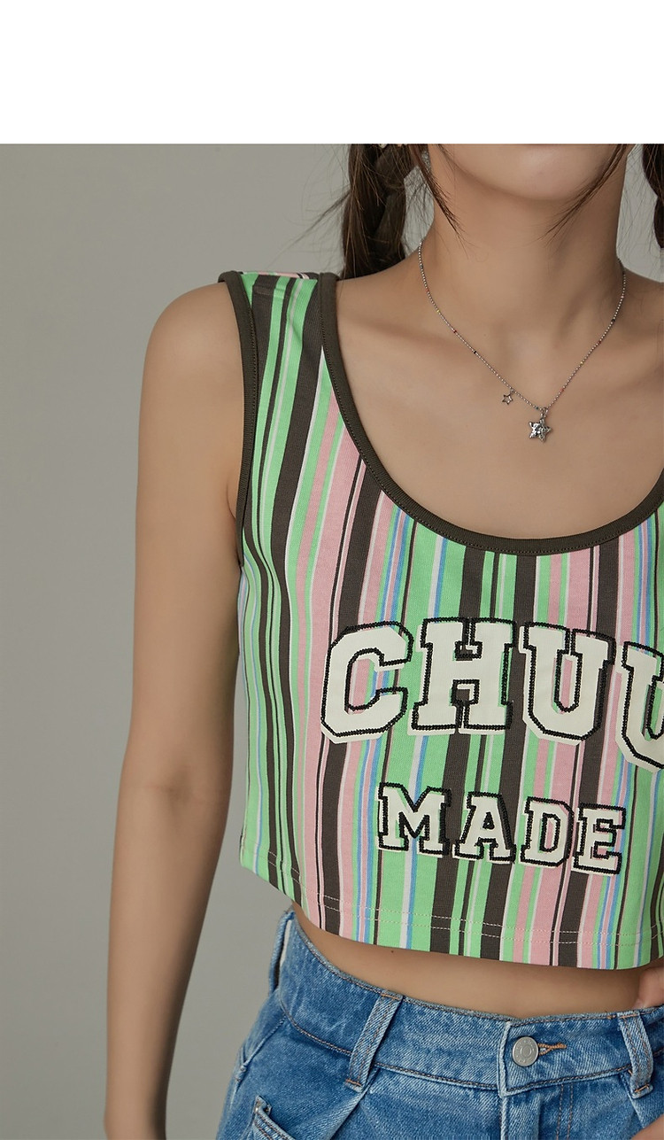 条纹背心女春夏露脐短款休闲运动风字母印花工字吊带 398547