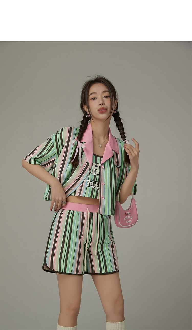 商品名称:条纹背心女春夏露脐短款休闲运动风字母印花工字吊带 398547