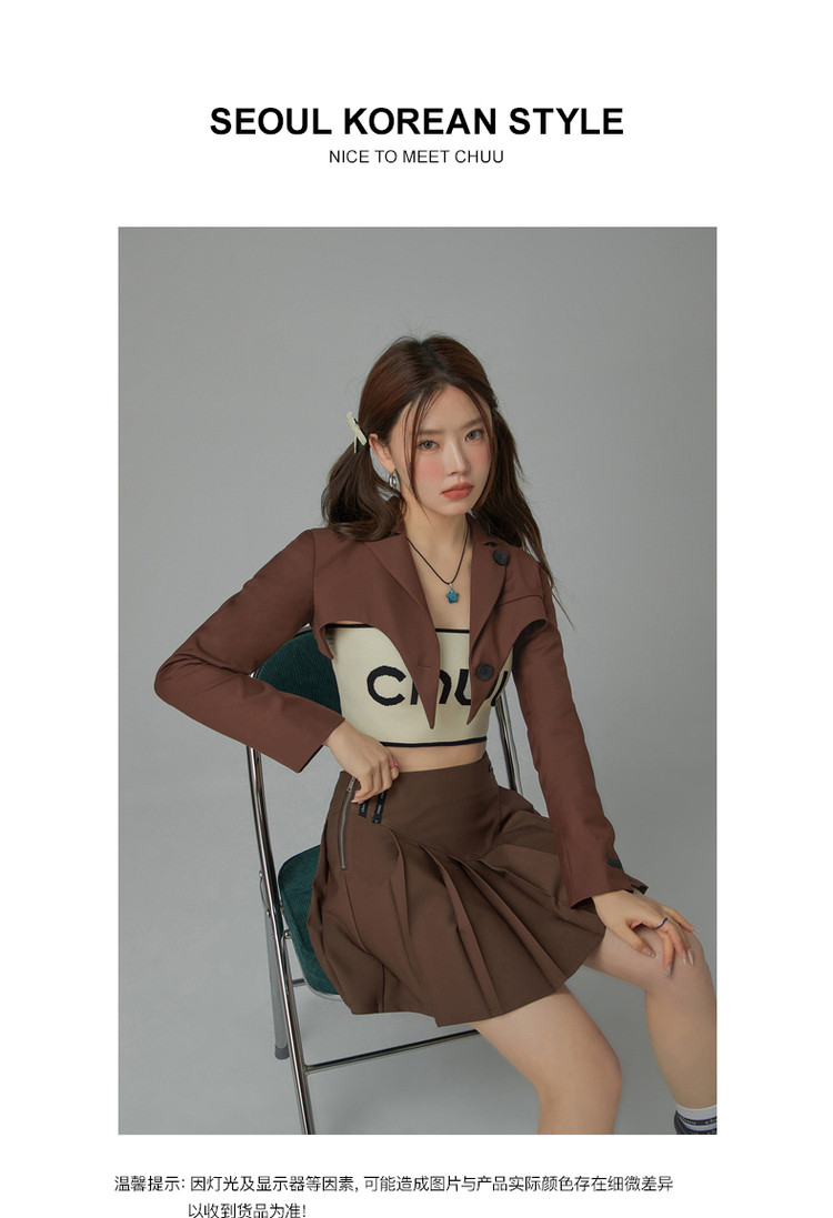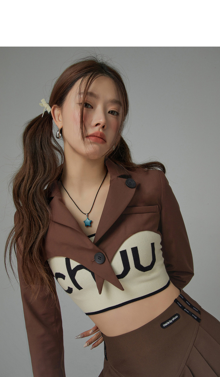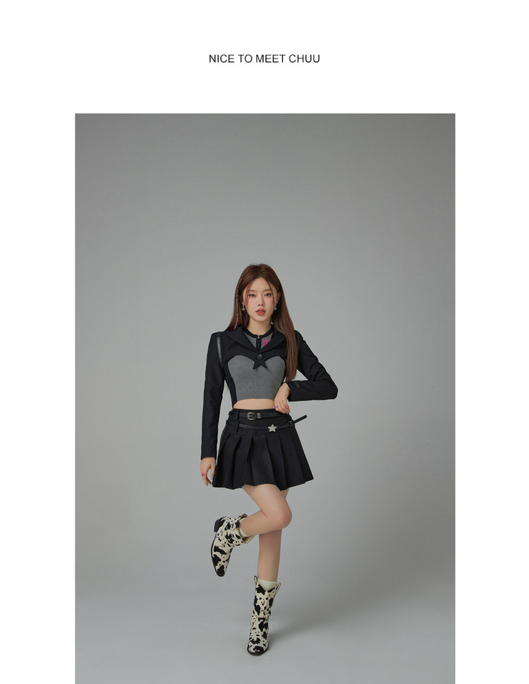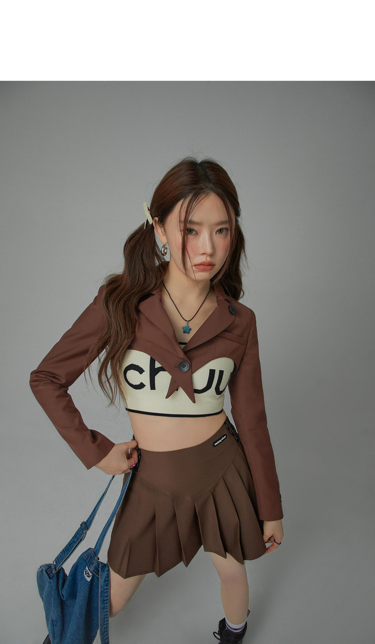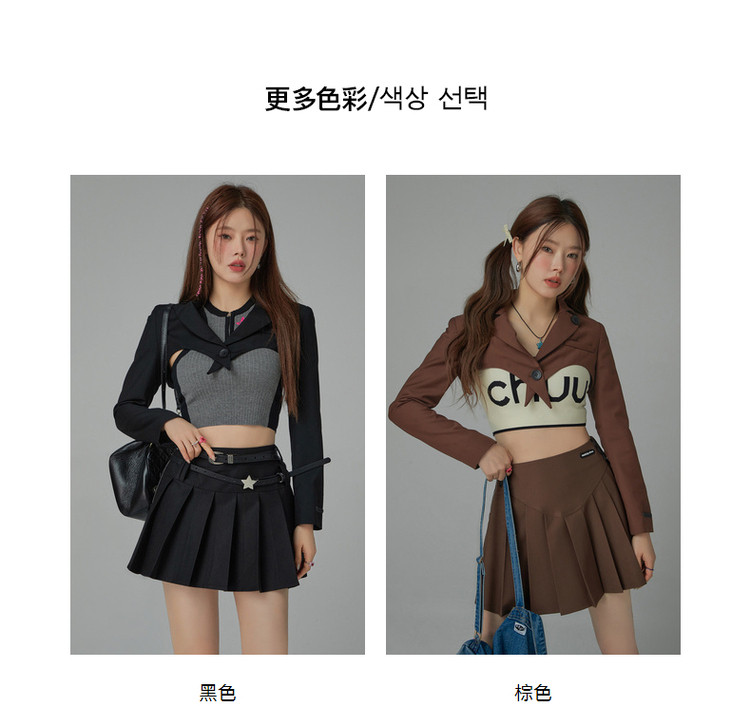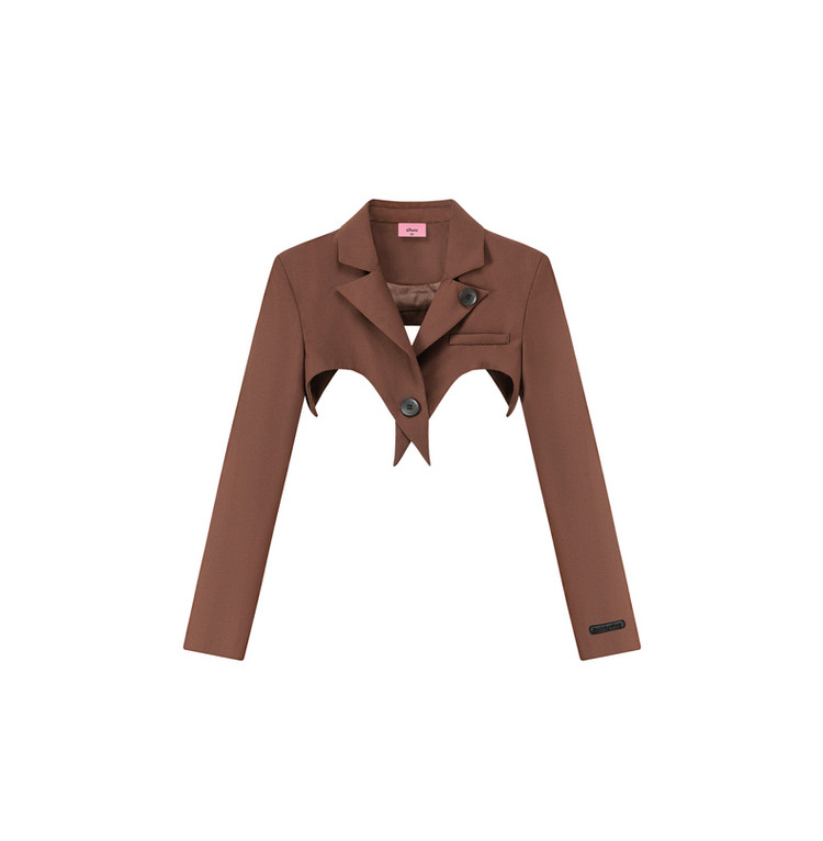 商品名称:纯色短款长袖西装女士春秋爱心剪裁辣妹小西服外套 020243