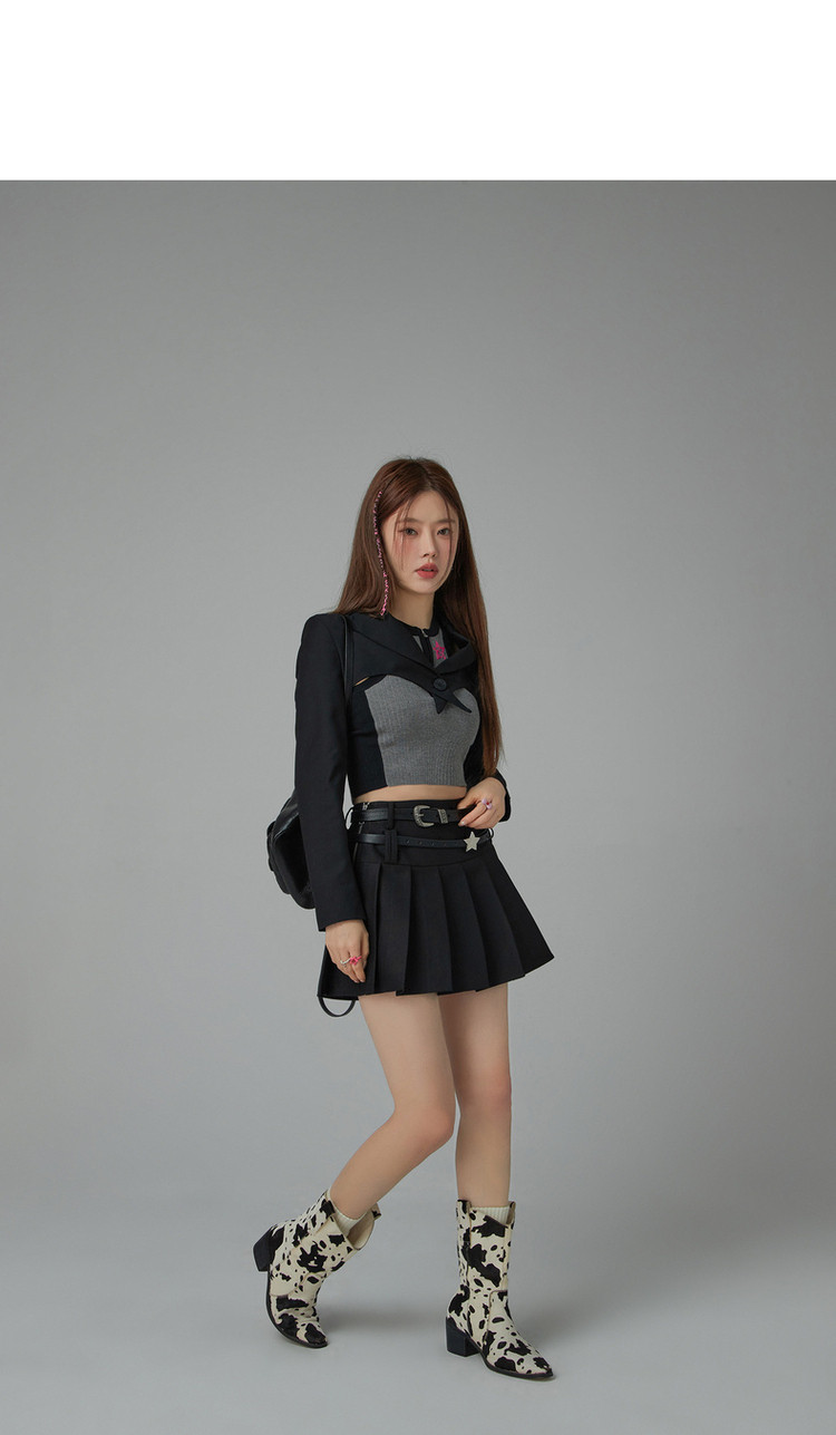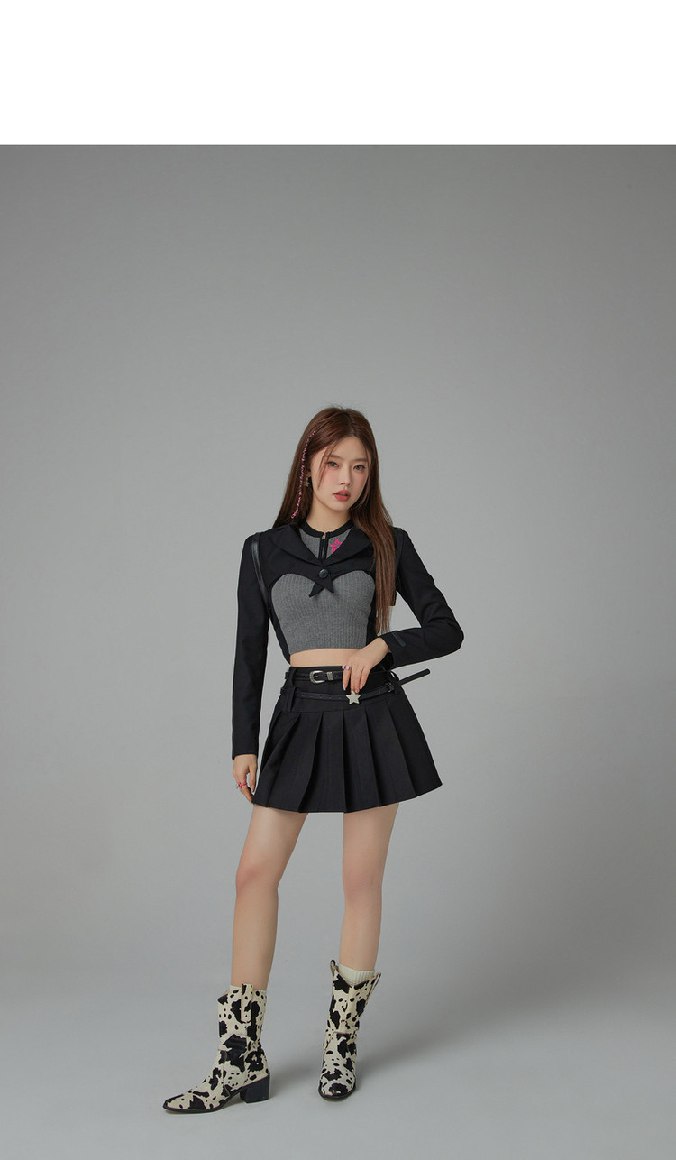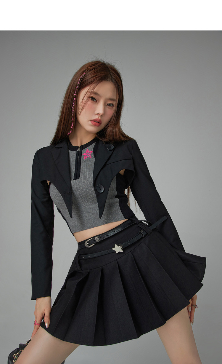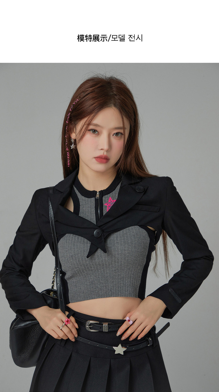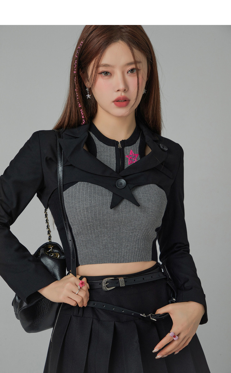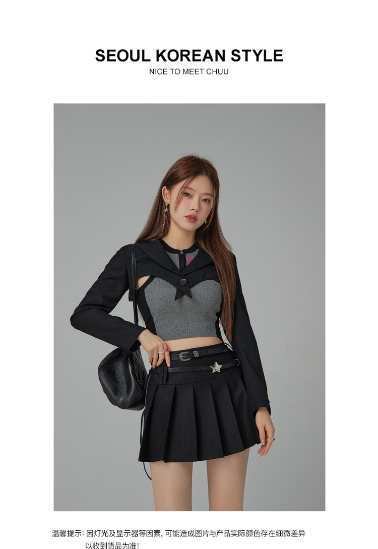 纯色短款长袖西装女士春秋爱心剪裁辣妹小西服外套 020243