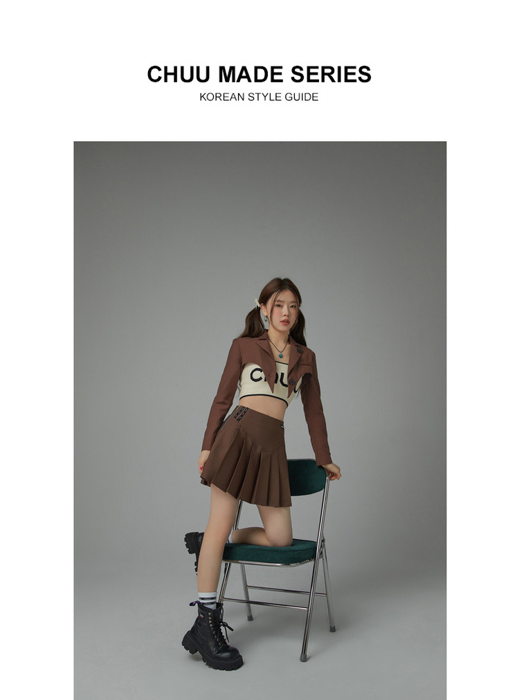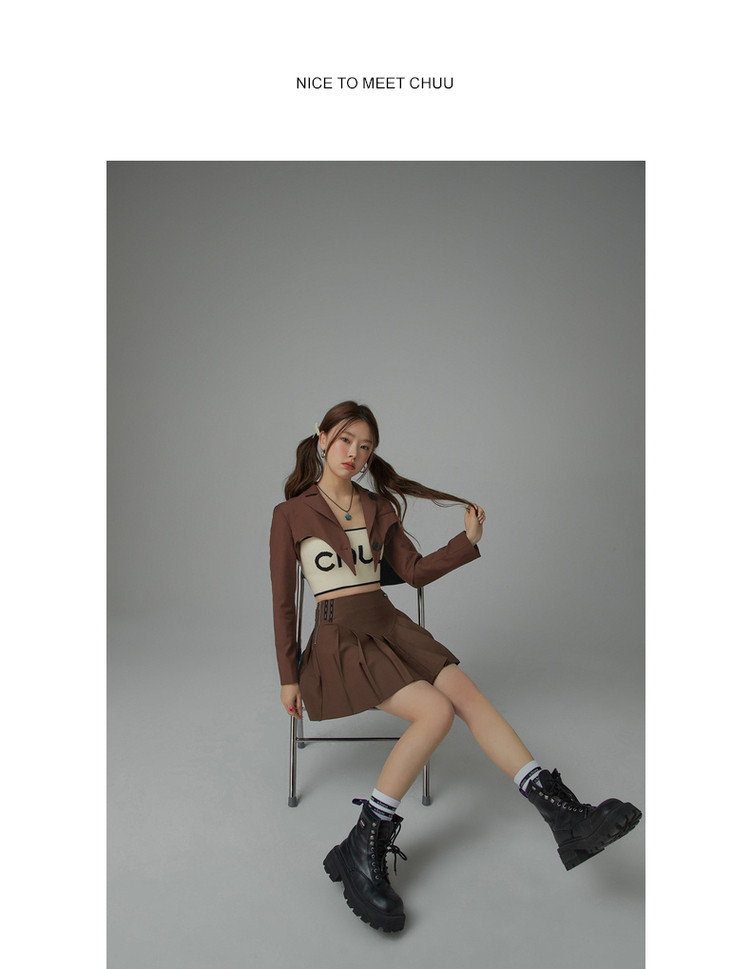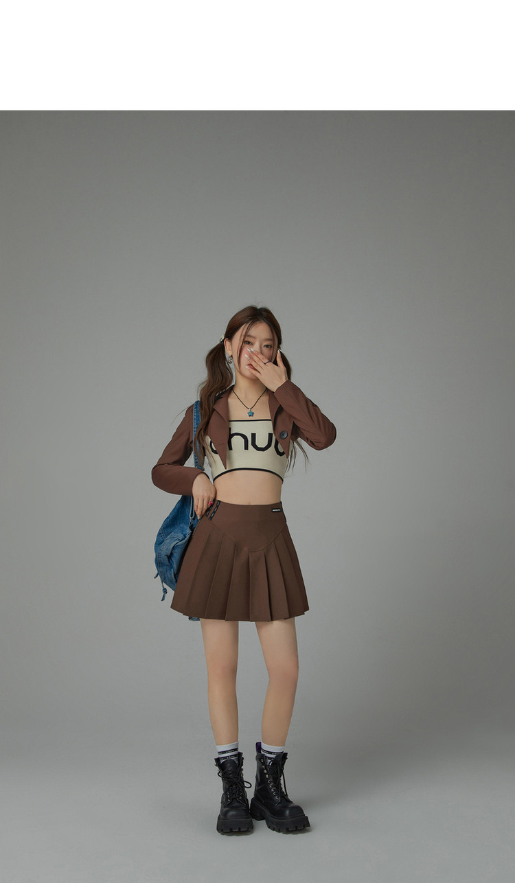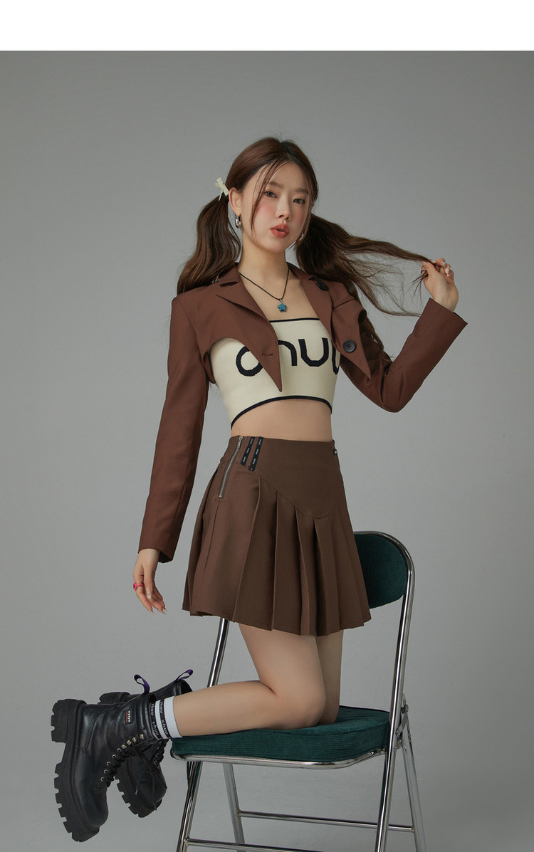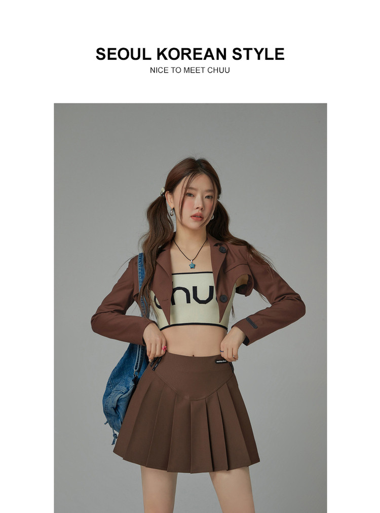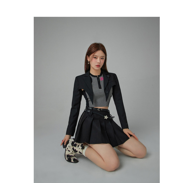 纯色短款长袖西装女士春秋爱心剪裁辣妹小西服外套 020243