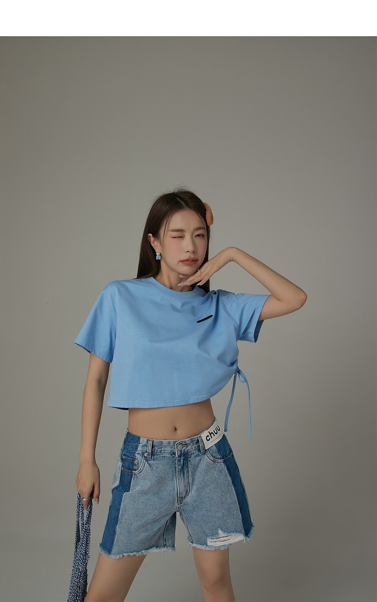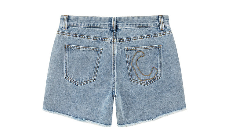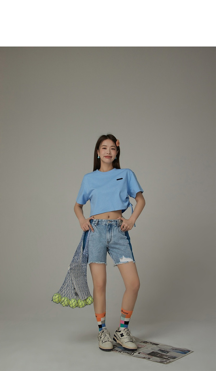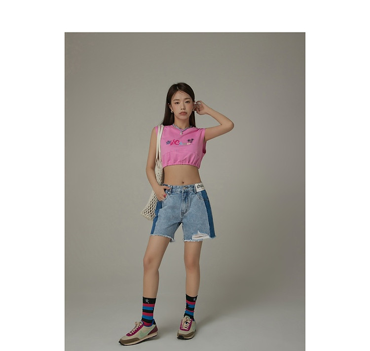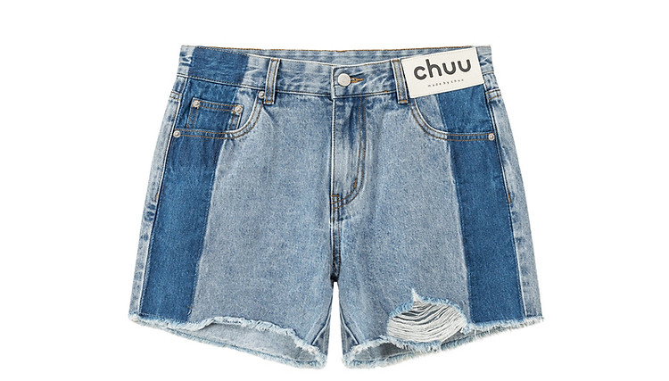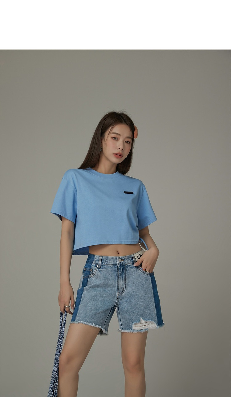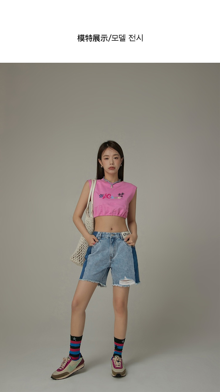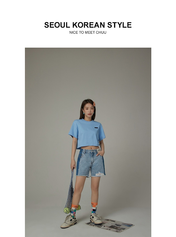 商品名称:水洗毛边牛仔裤女士夏拼色高腰设计洋气破洞短裤 761235