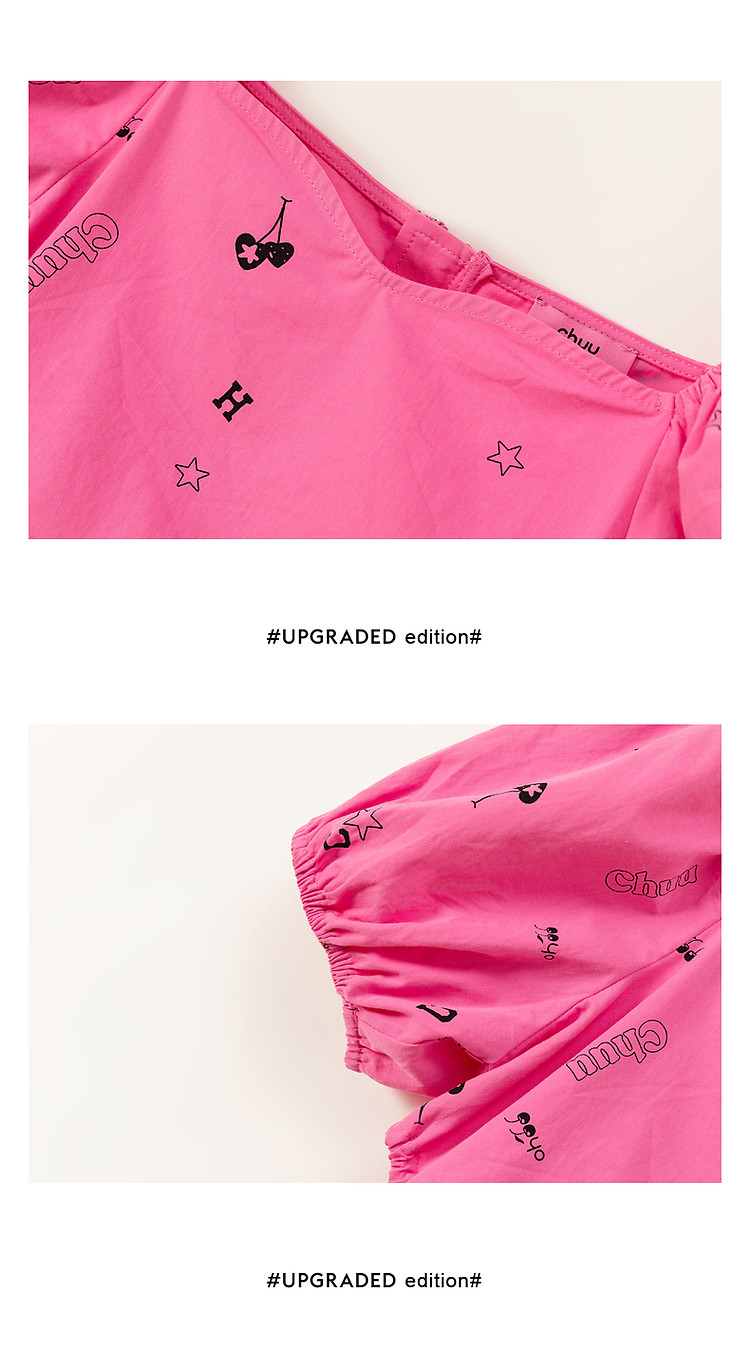 商品名称:印花镂空连衣裙女夏小樱桃露腰字母泡泡袖短款裙子 211667