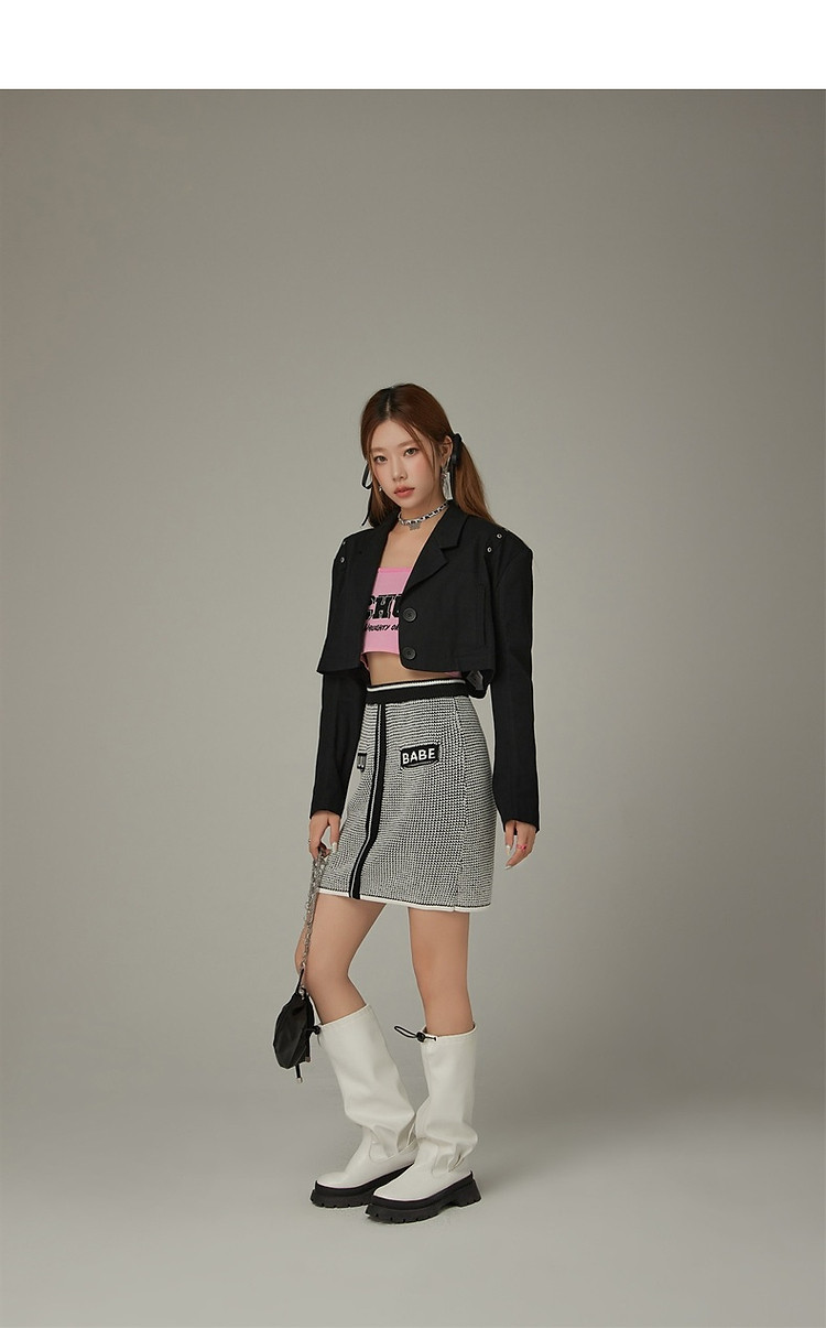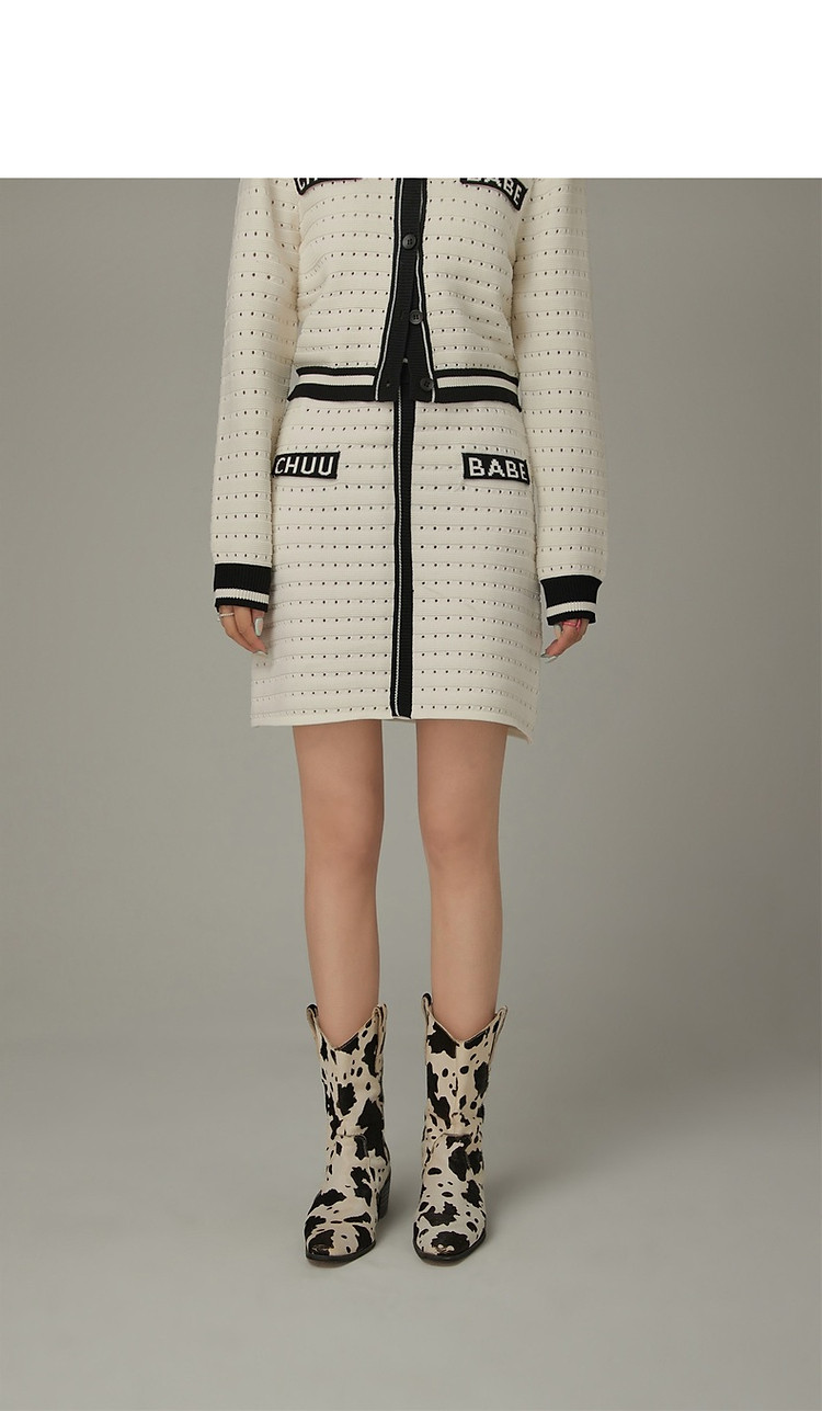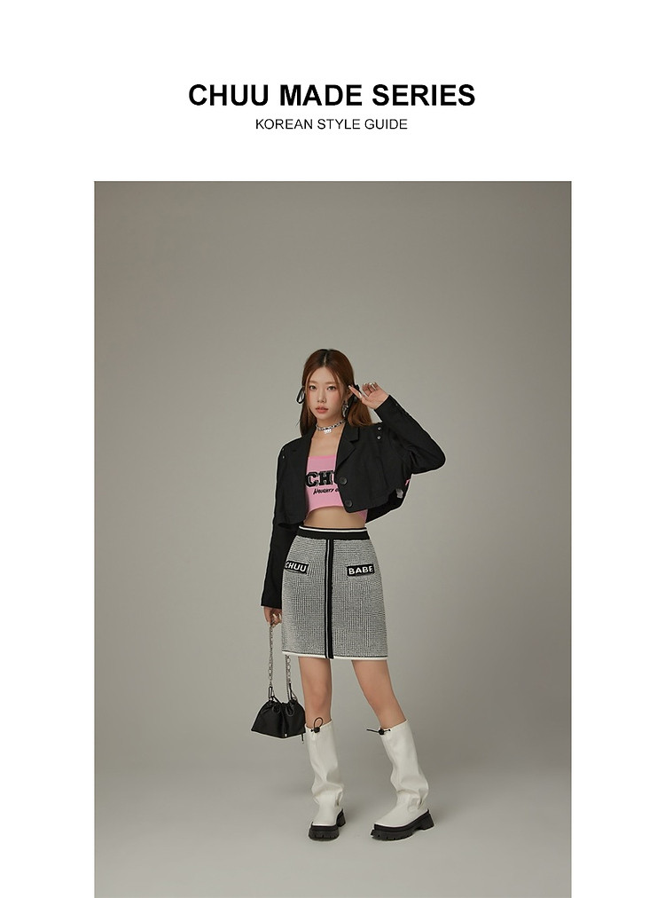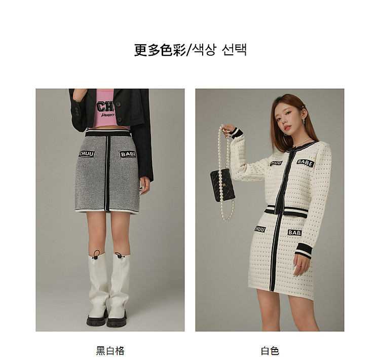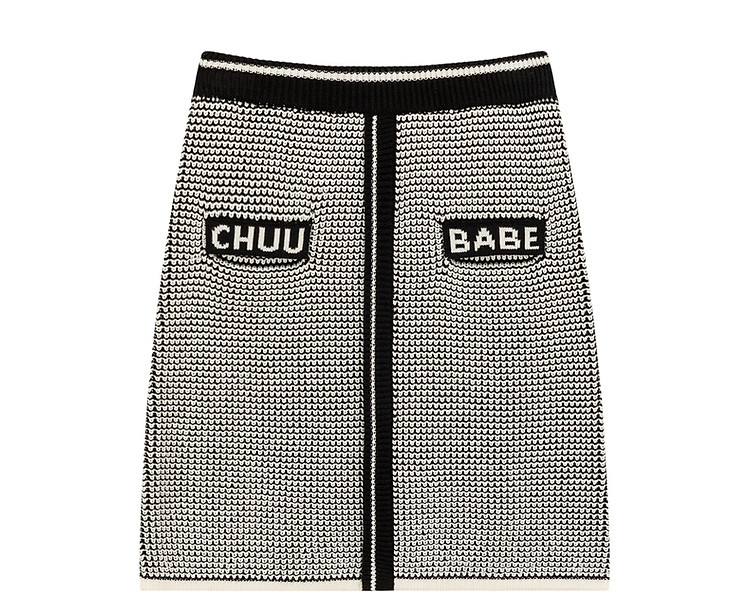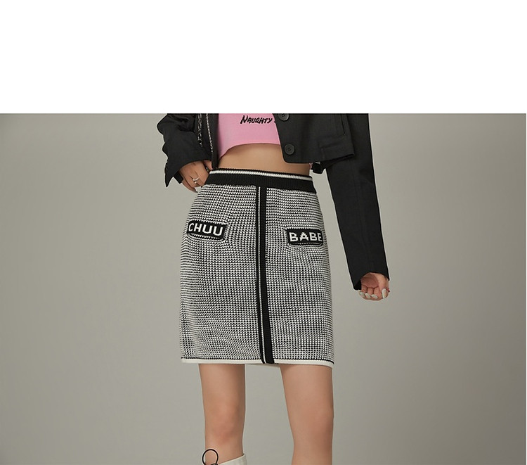 商品名称:千鸟格撞色半身裙女春秋高腰字母提花A字针织短裙子 871955