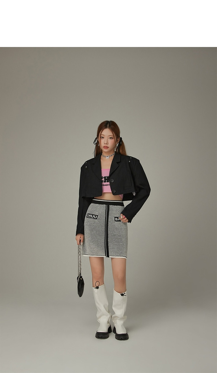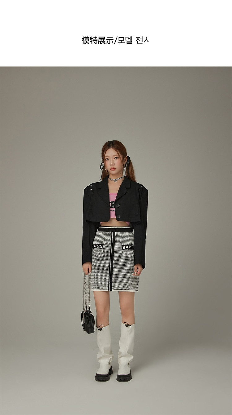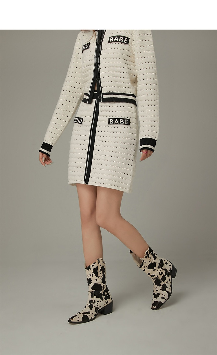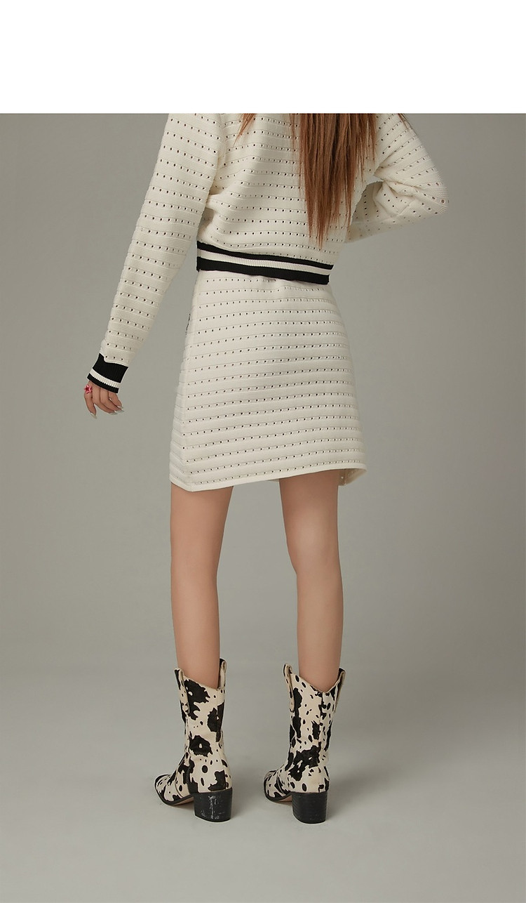 商品名称:千鸟格撞色半身裙女春秋高腰字母提花A字针织短裙子 871955
