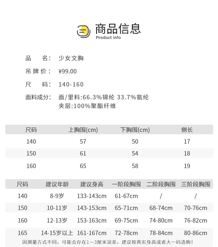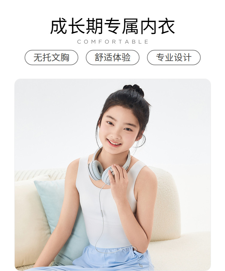 商品名称:无痕女童内衣发育期一阶段夏消臭透气女生小背心初中生文胸防凸点 001093