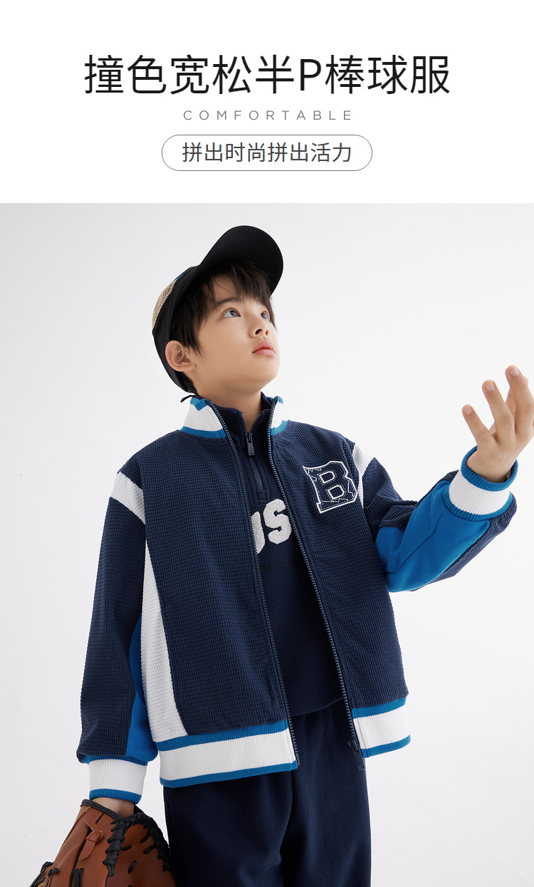 商品名称:童装男童外套春款中大童撞色棒球服 142597
