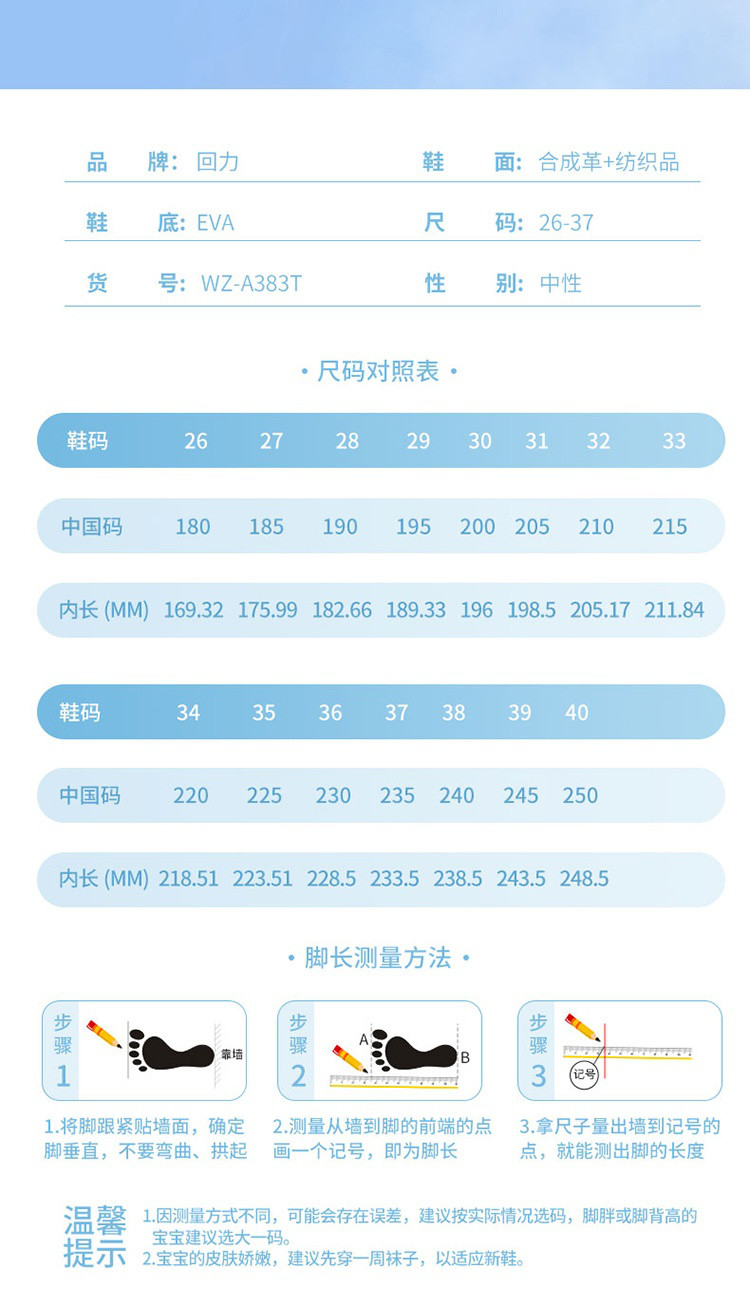 | 尺码 | 中国码 | 脚长(mm) | 鞋内长(mm) |