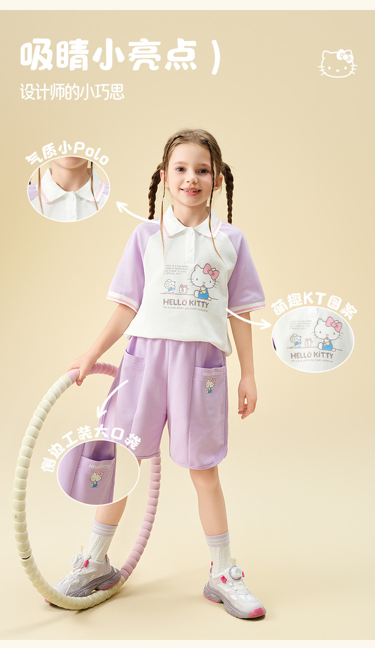 商品名称:【POLO撞色上衣+工装大口袋裤】24款女童夏季洋气可爱套装 261086