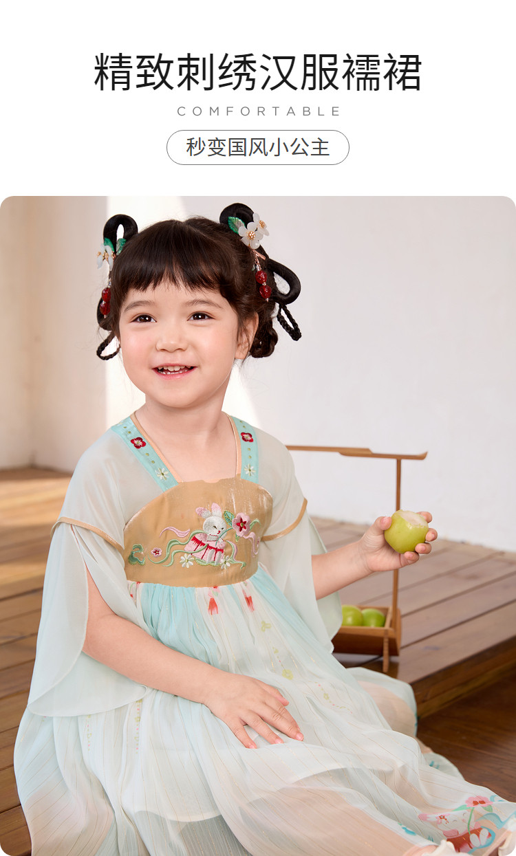 商品名称:国风汉服襦裙儿童裙子童装女童连衣裙夏装公主裙公主裙甜美网纱裙 929669