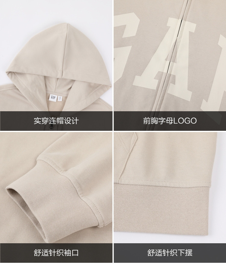 商品名称:Gap男女装春夏款LOGO美式复古风圈织软卫衣情侣外套892182 152410