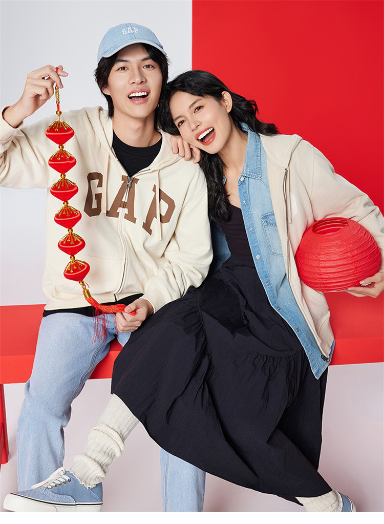 Gap男女装春夏款LOGO美式复古风圈织软卫衣情侣外套892182 152410