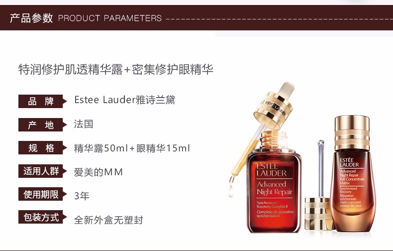 商品名称:Estee Lauder/雅诗兰黛 小棕瓶ANR修护精华套装 两件套