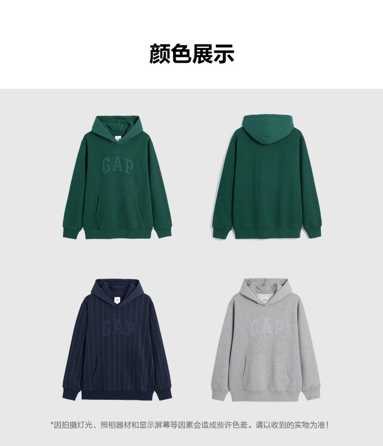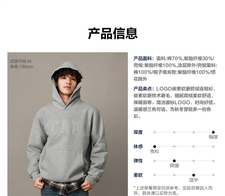 商品名称:Gap男女装春季LOGO碳素软磨抓绒连帽卫衣841193 352026