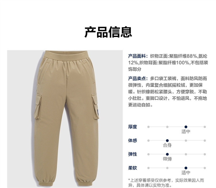 商品名称:Gap男童秋冬季防风防雨抓绒工装裤836872儿童装束脚裤 991194