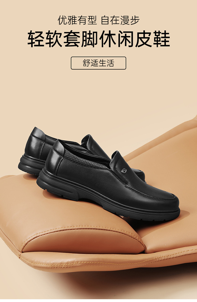 男士休闲皮鞋男鞋商务休闲皮鞋一脚蹬爸爸皮鞋男 057999