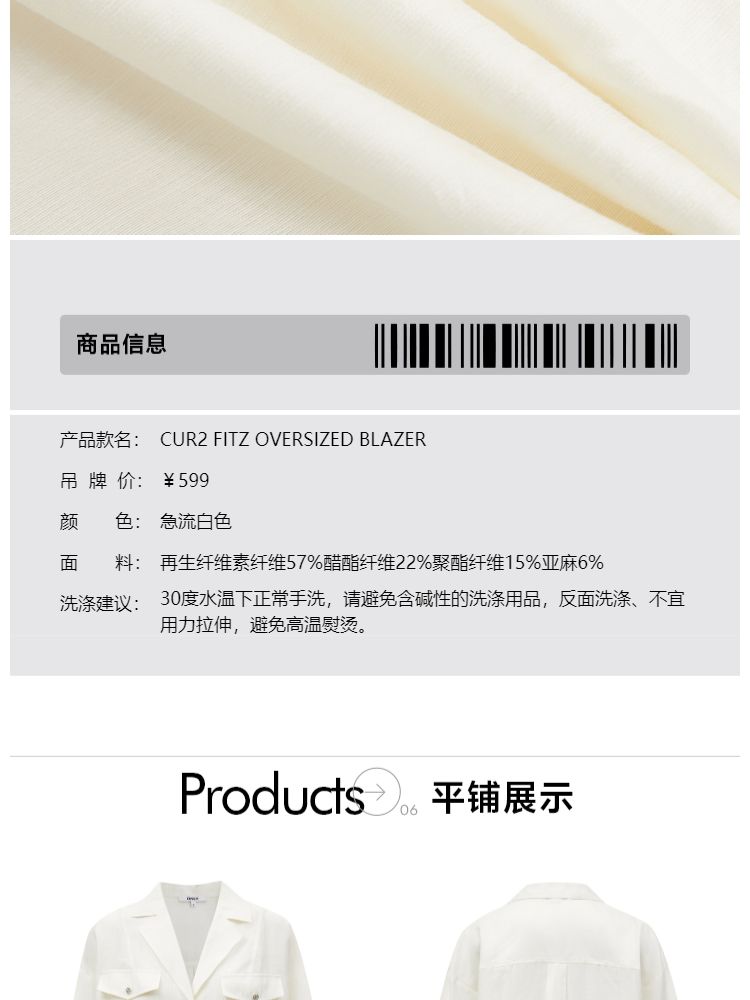 商品名称:【时尚通勤风】夏季宽松白色中长款西服女 881498