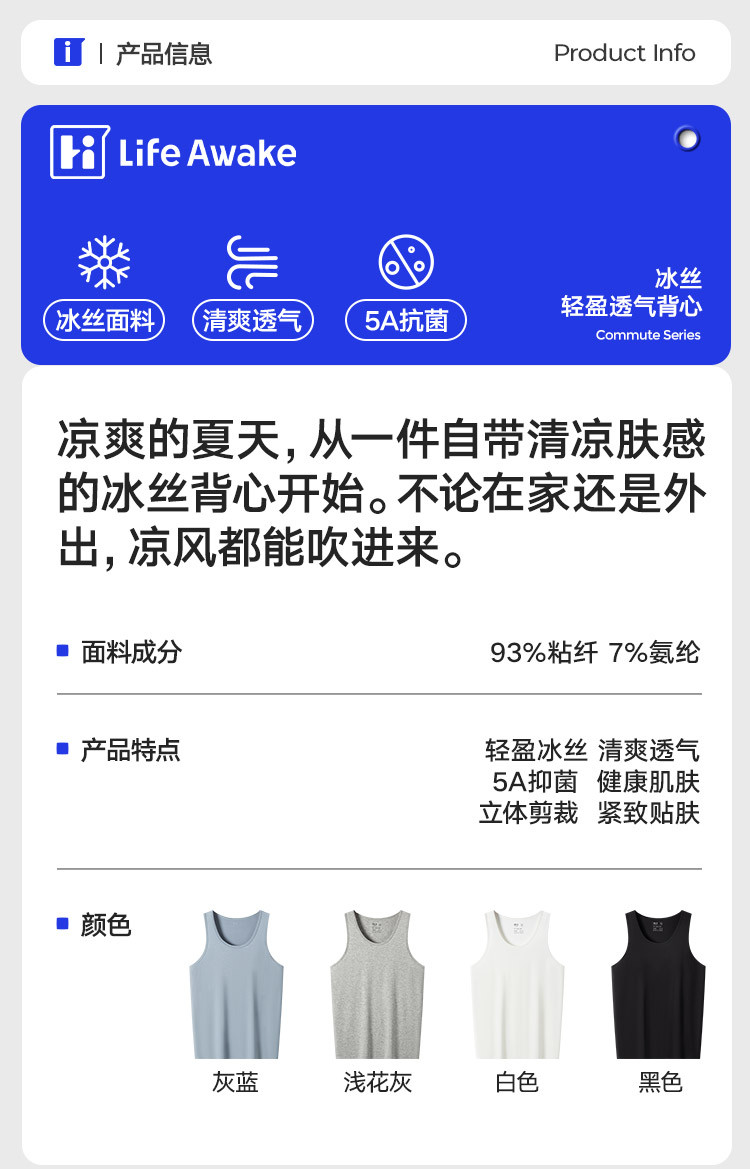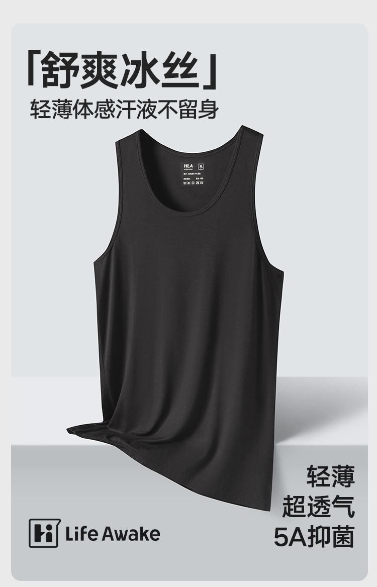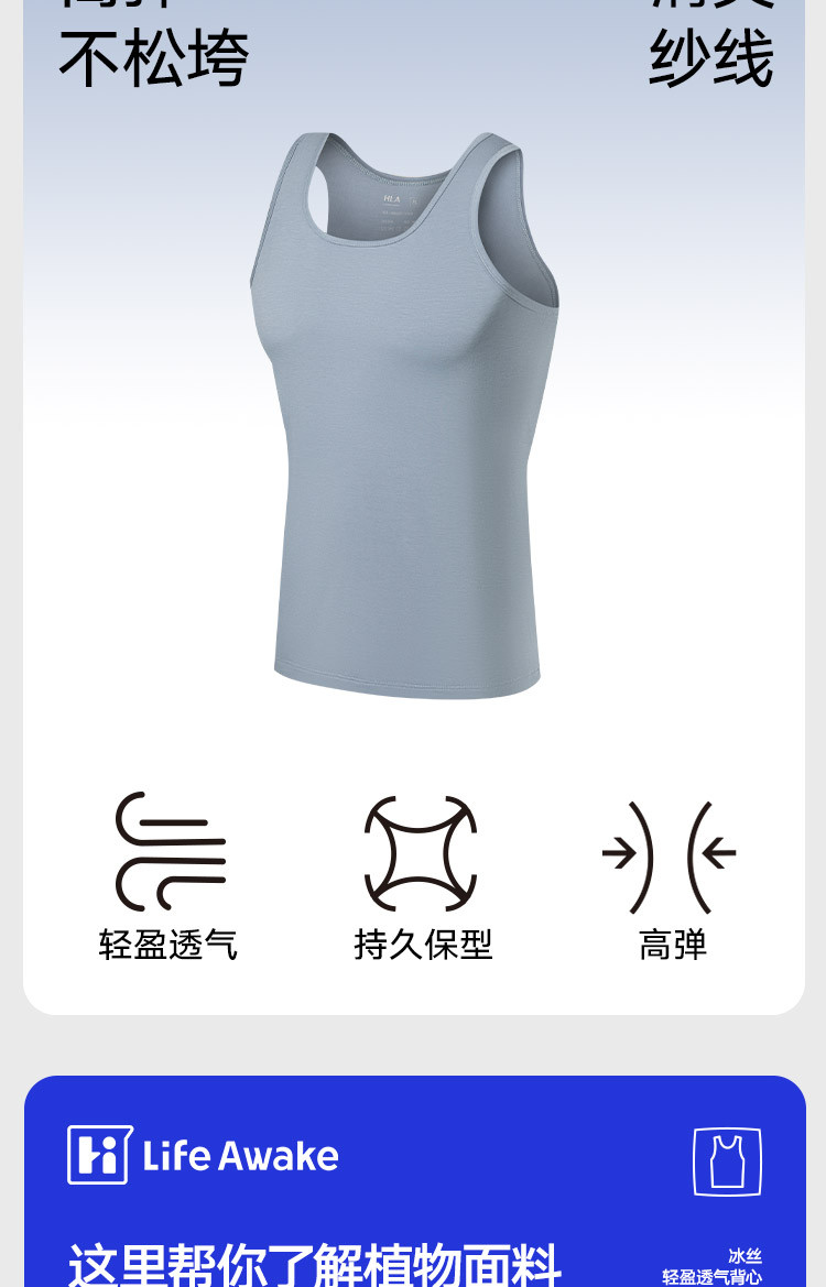 商品名称:【冰丝透气 2件装】男士背心夏季薄款跨栏运动坎袖无袖打底汗衫 862234